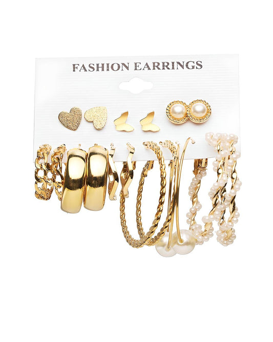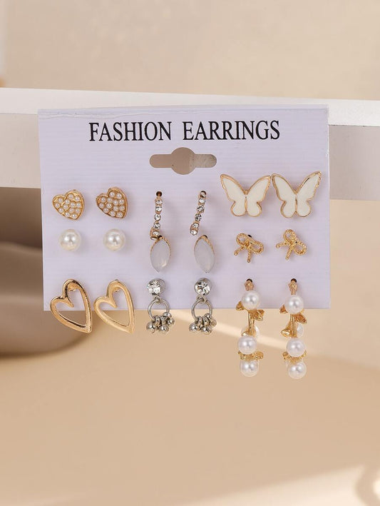 6pcs Geometric Circle & Faux pearl Earrings Set