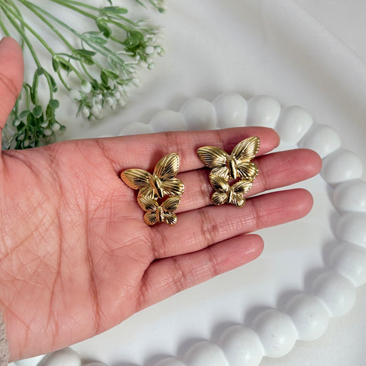 Two Butterfly Stud Earrings Stainless Steel | Waterproof
