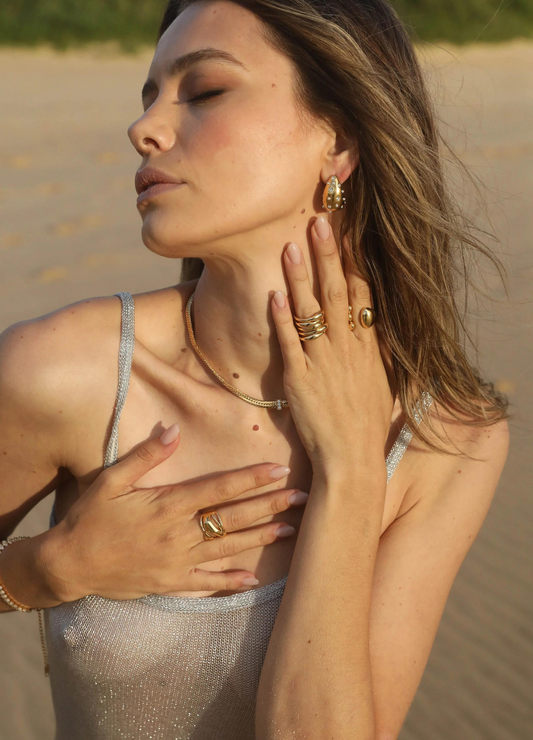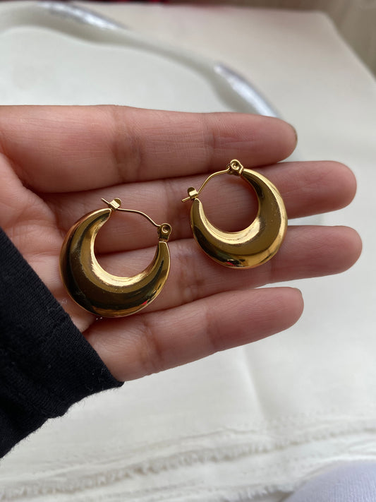 Tipsy Twilight Golden Pleated Anti Tarnish Waterproof Hoops Earrings