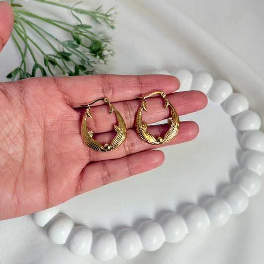 Two Dolphin Kissing Gold Pleated Earrings | Waterproof & Tarnish Free