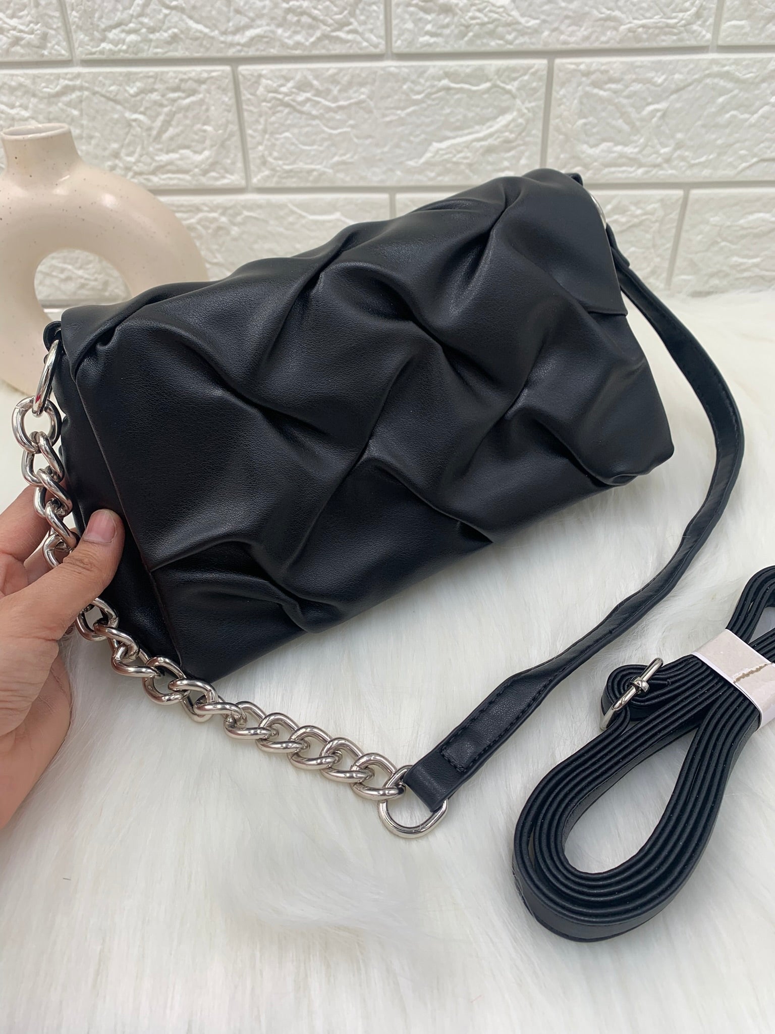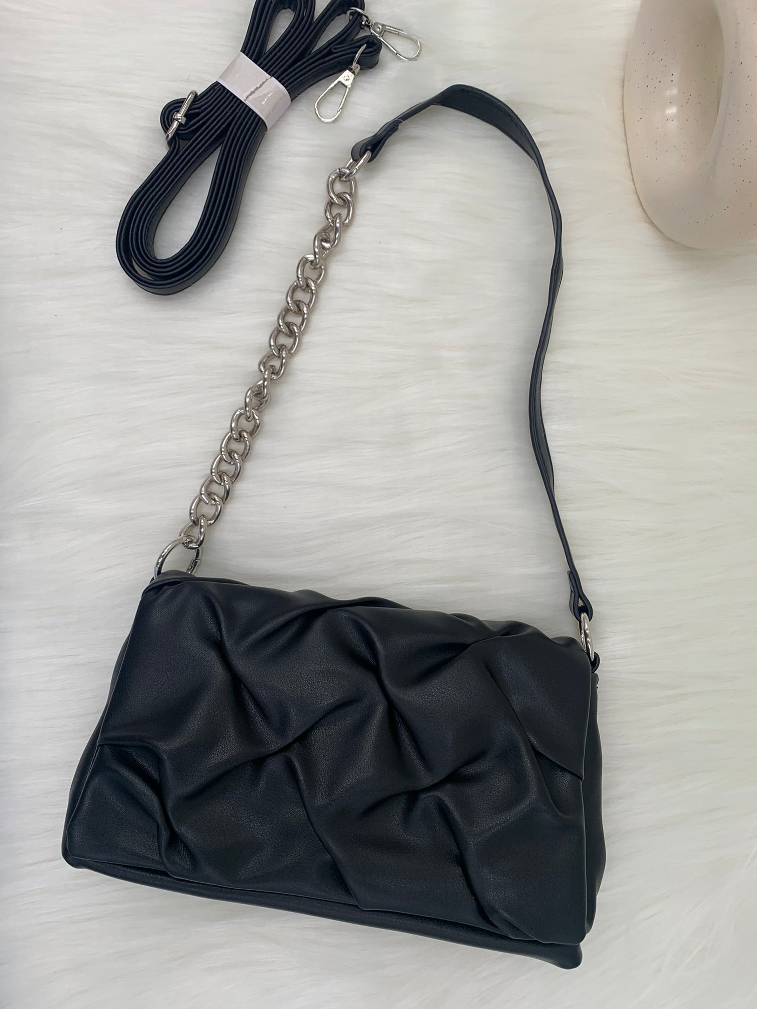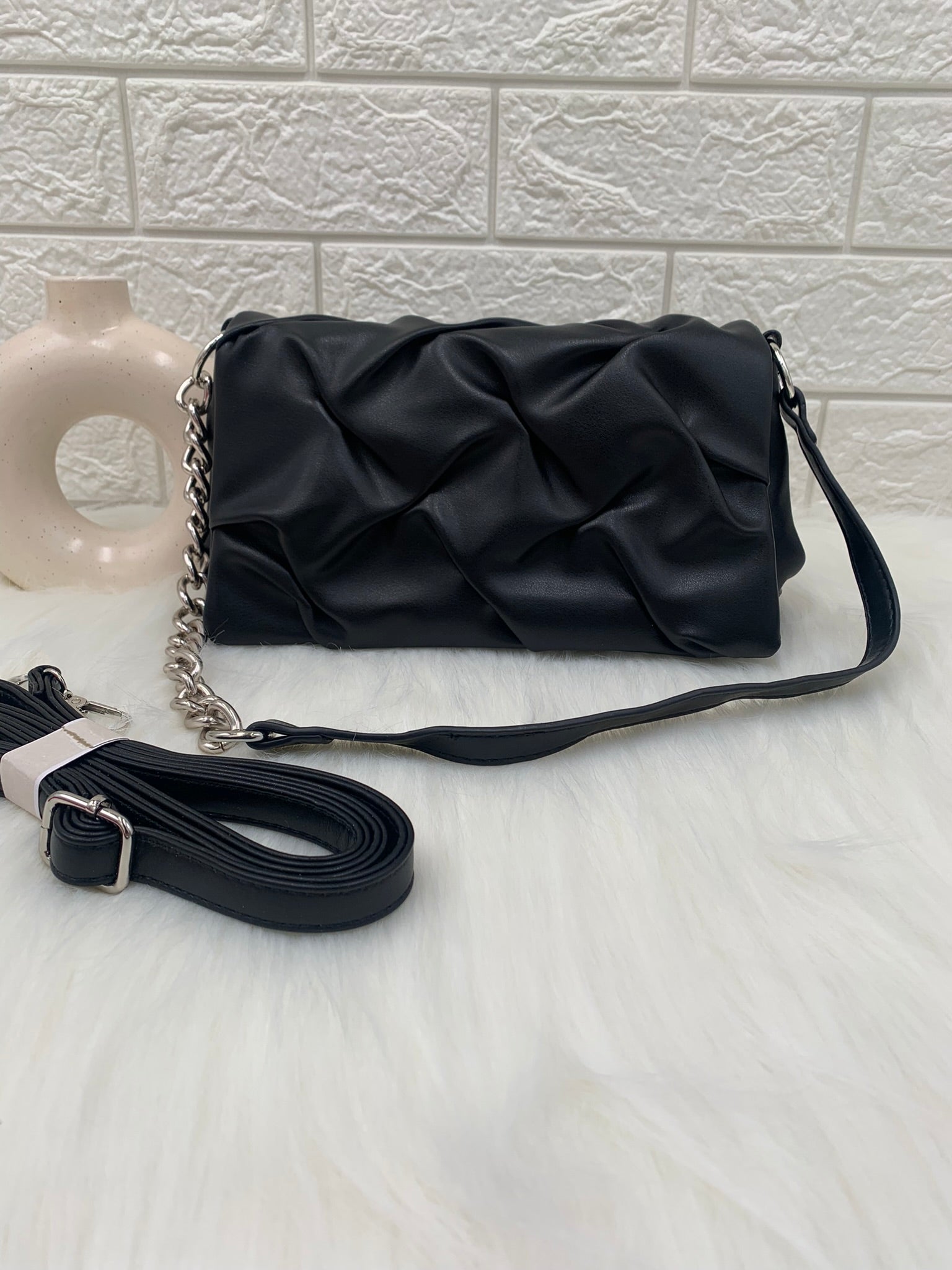 1 main compartment, has a button closure, 1 external pocket, 1 inner pockets and back side pocket