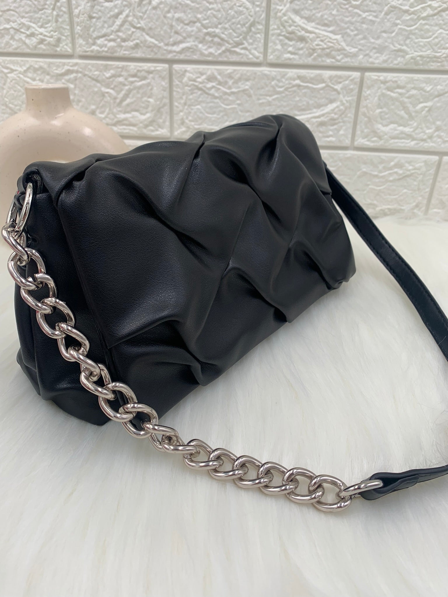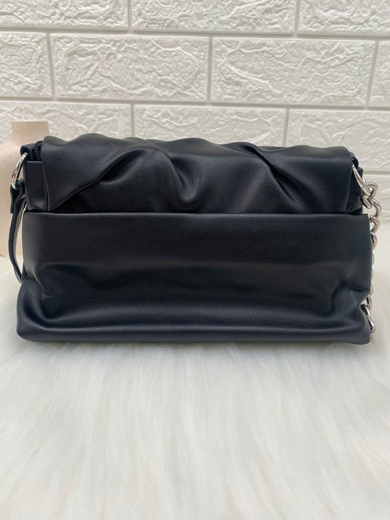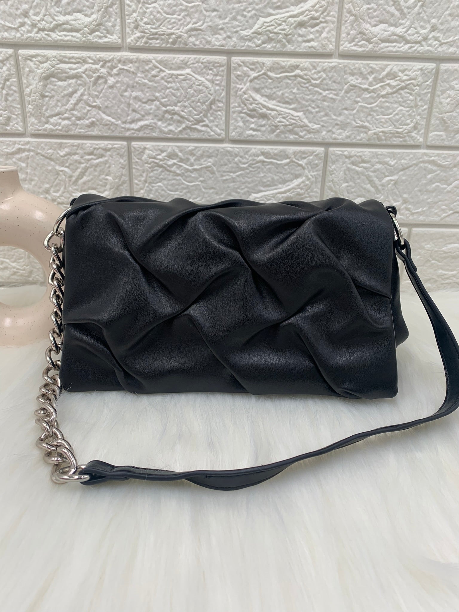 1 main compartment, has a button closure, 1 external pocket, 1 inner pockets and back side pocket