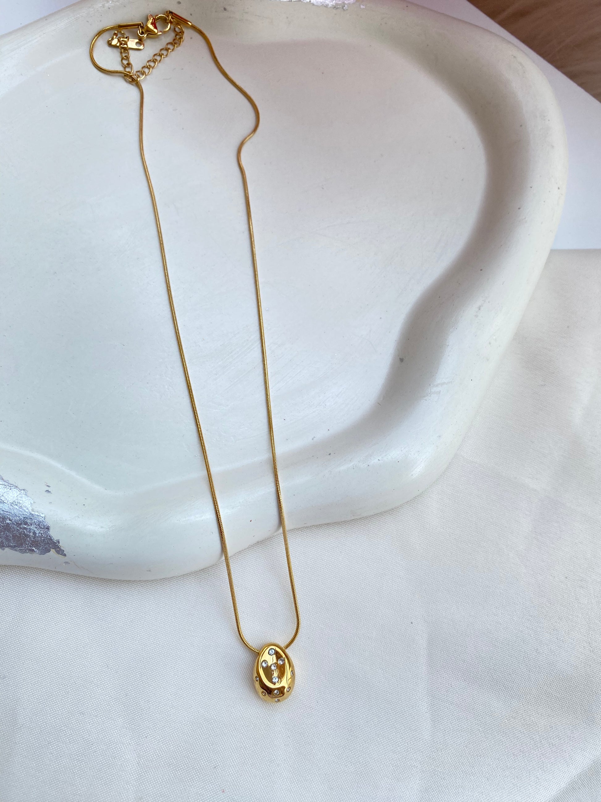 Gold Pleated drop pebble charm necklace