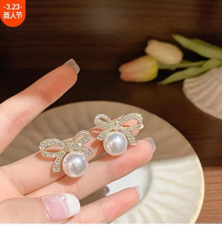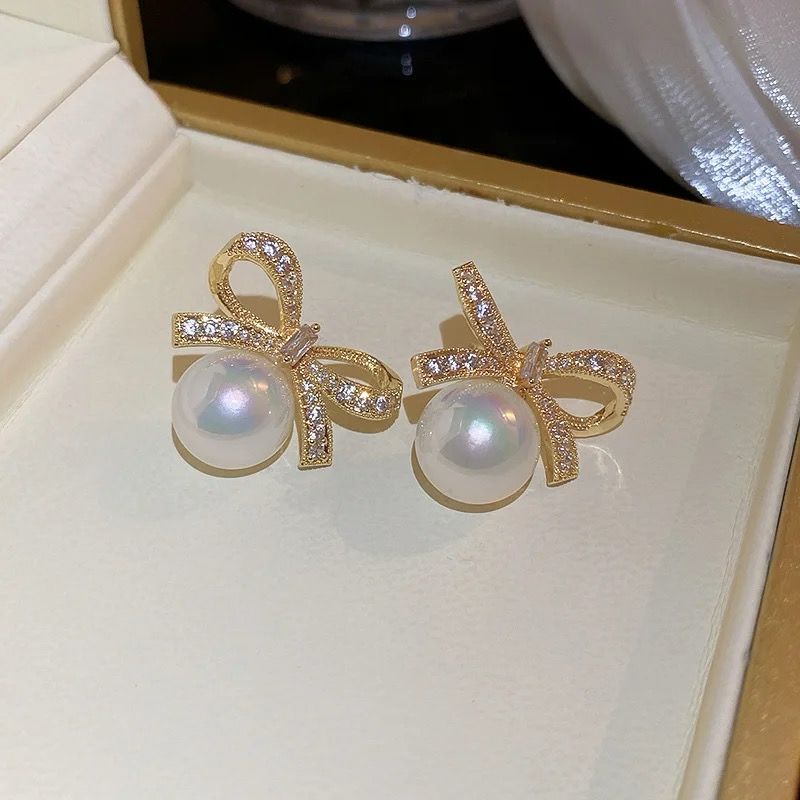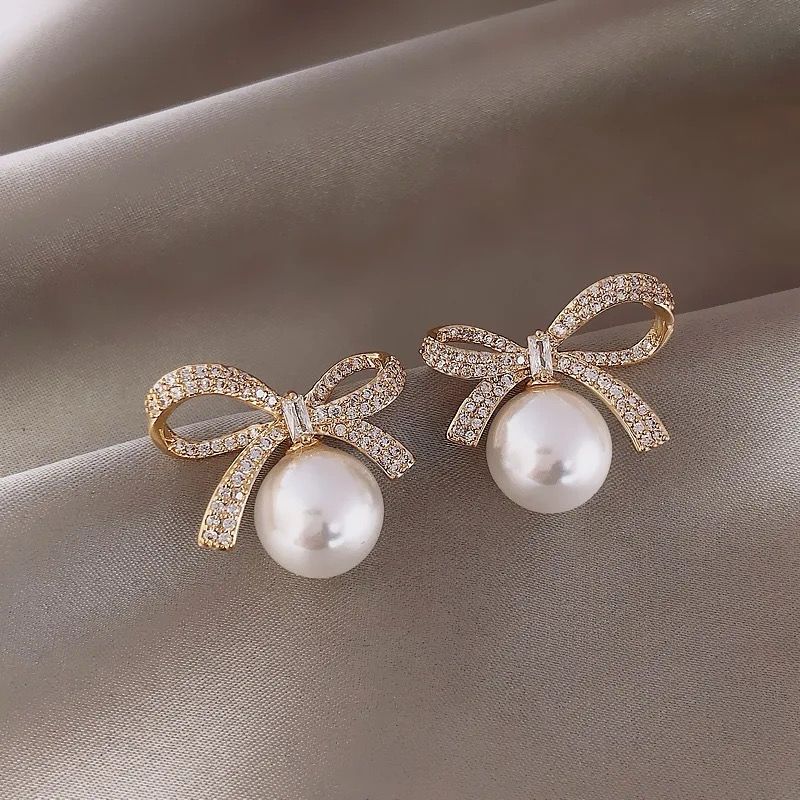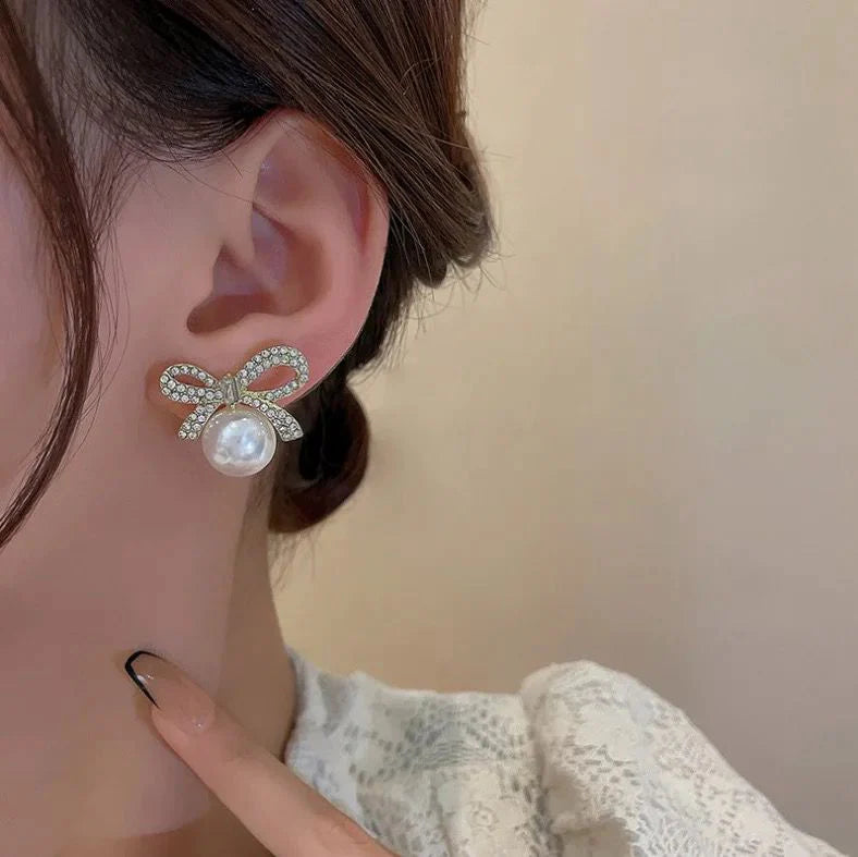 - Elegant Design: Receive 1 pair of exquisite bow stud earrings, featuring a rhinestone bow design with a stunning pearl drop.