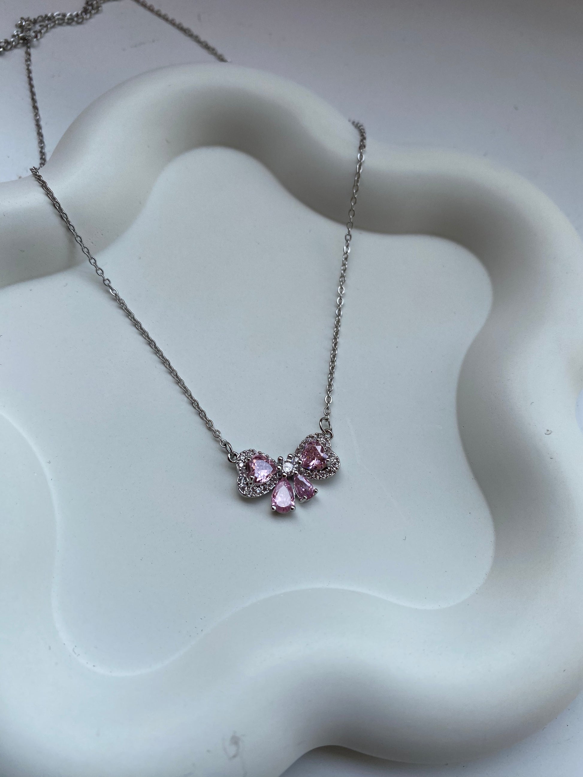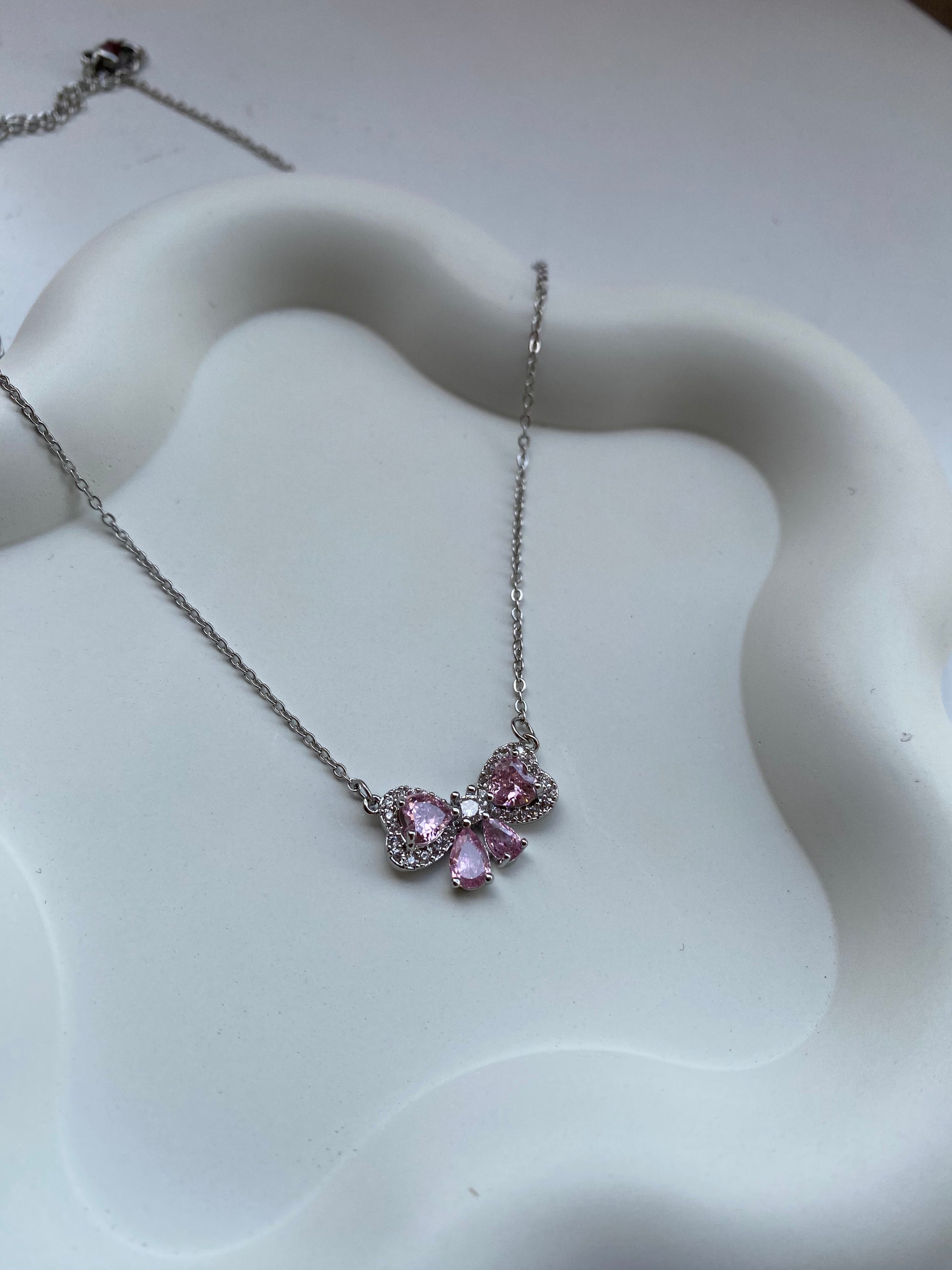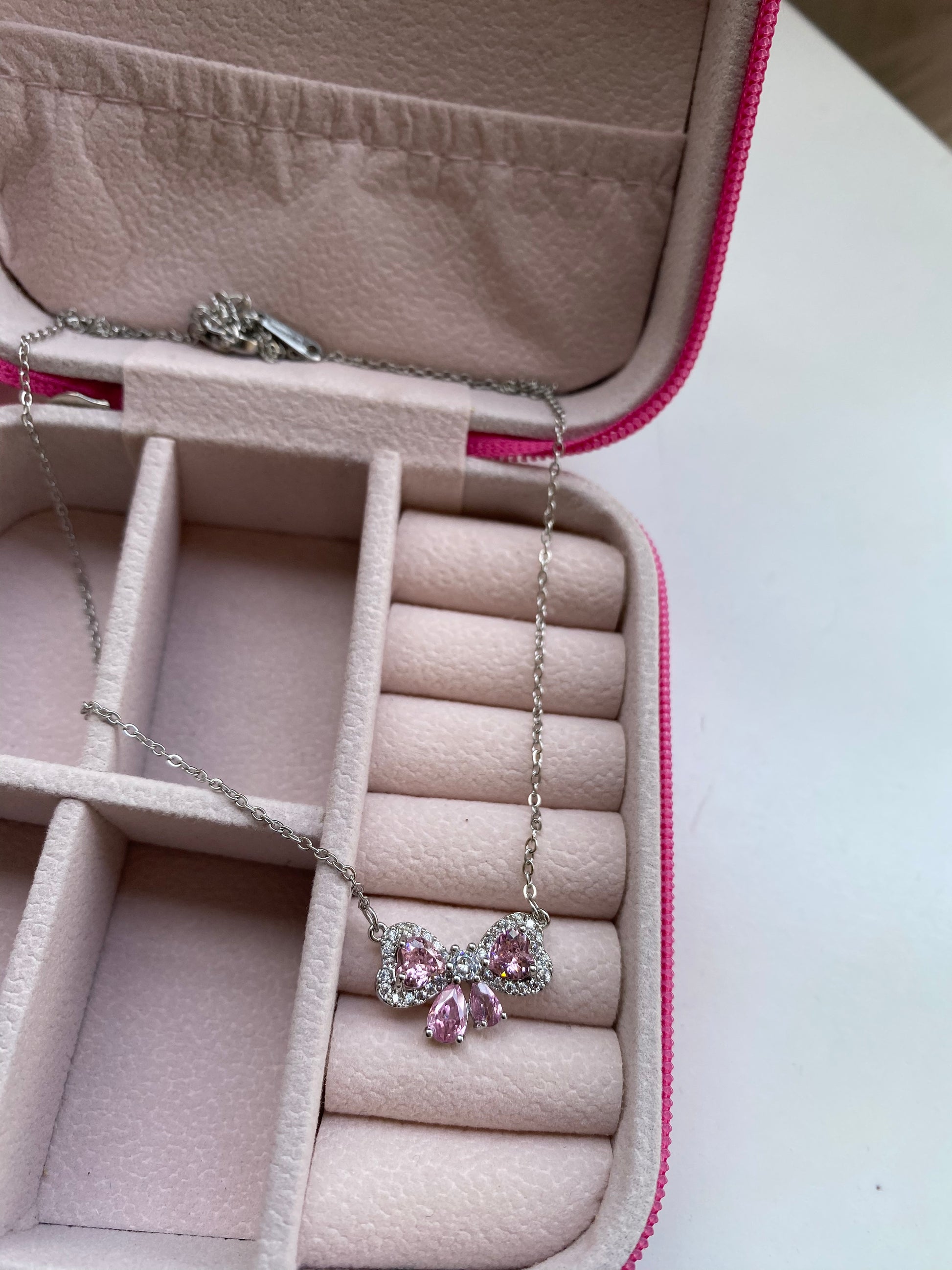 Step into the spotlight with this stunning bowknot pink crystal necklace, designed to add a touch of charm to any outfit. Whether you're dressing up for a special occasion or adding a bit of sparkle to your everyday look, this necklace is perfect for those who appreciate beauty and want to stand out.
