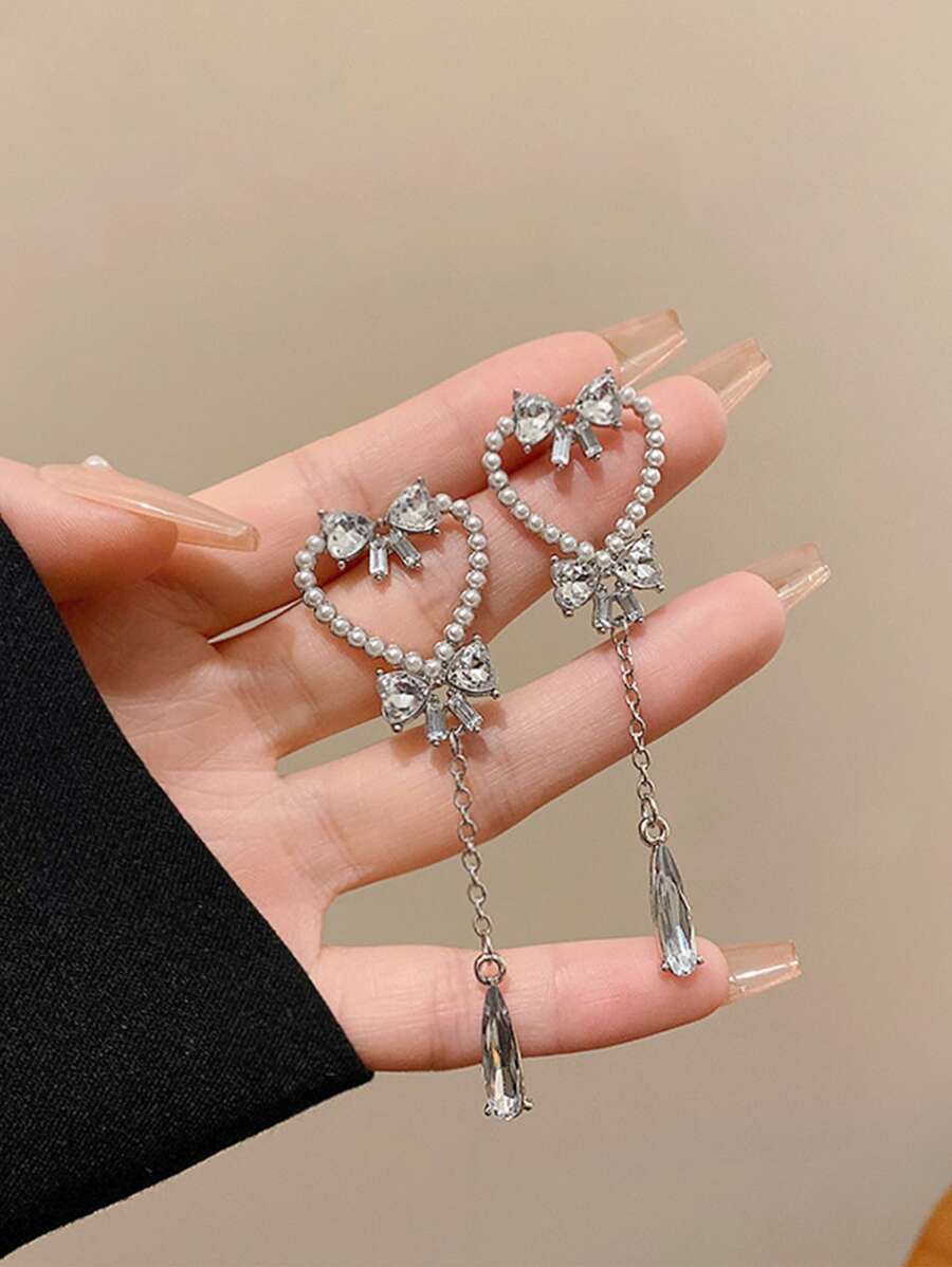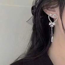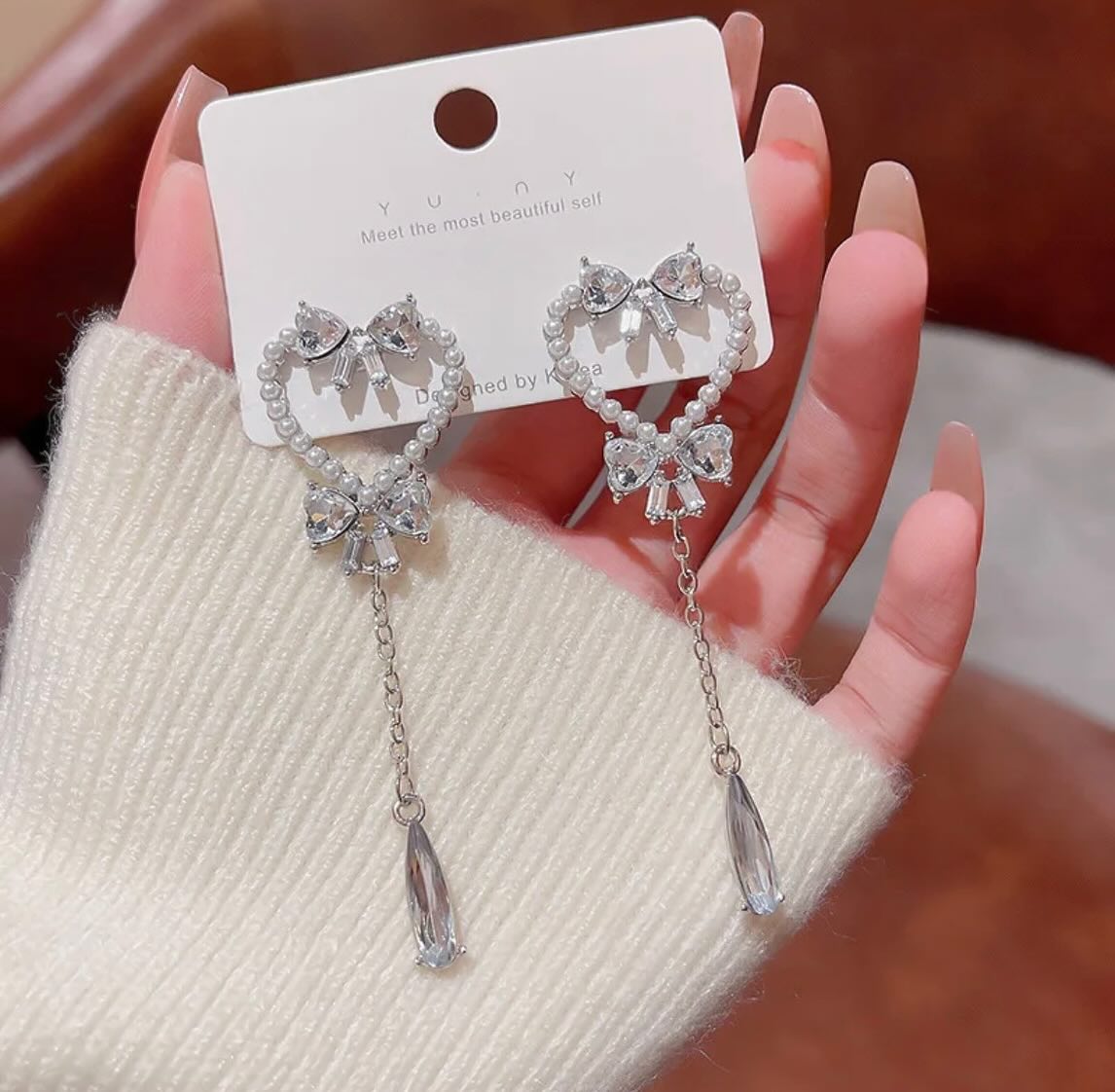 These trendy Pearl Love Bow Earrings, designed for teens and women, feature a chic blend of long tassels, sparkling crystals, and punk metal chains. Inspired by Korean fashion, they effortlessly combine vintage charm with modern flair, making them the perfect accessory for any occasion.