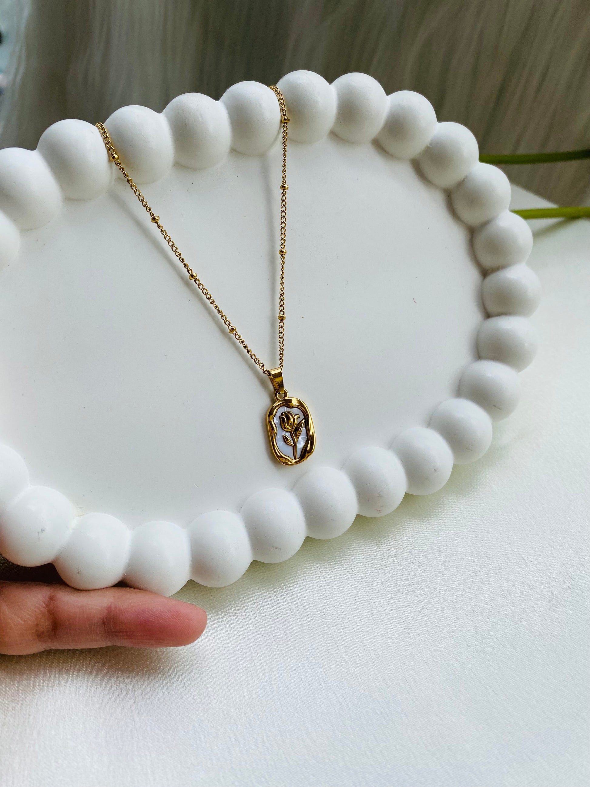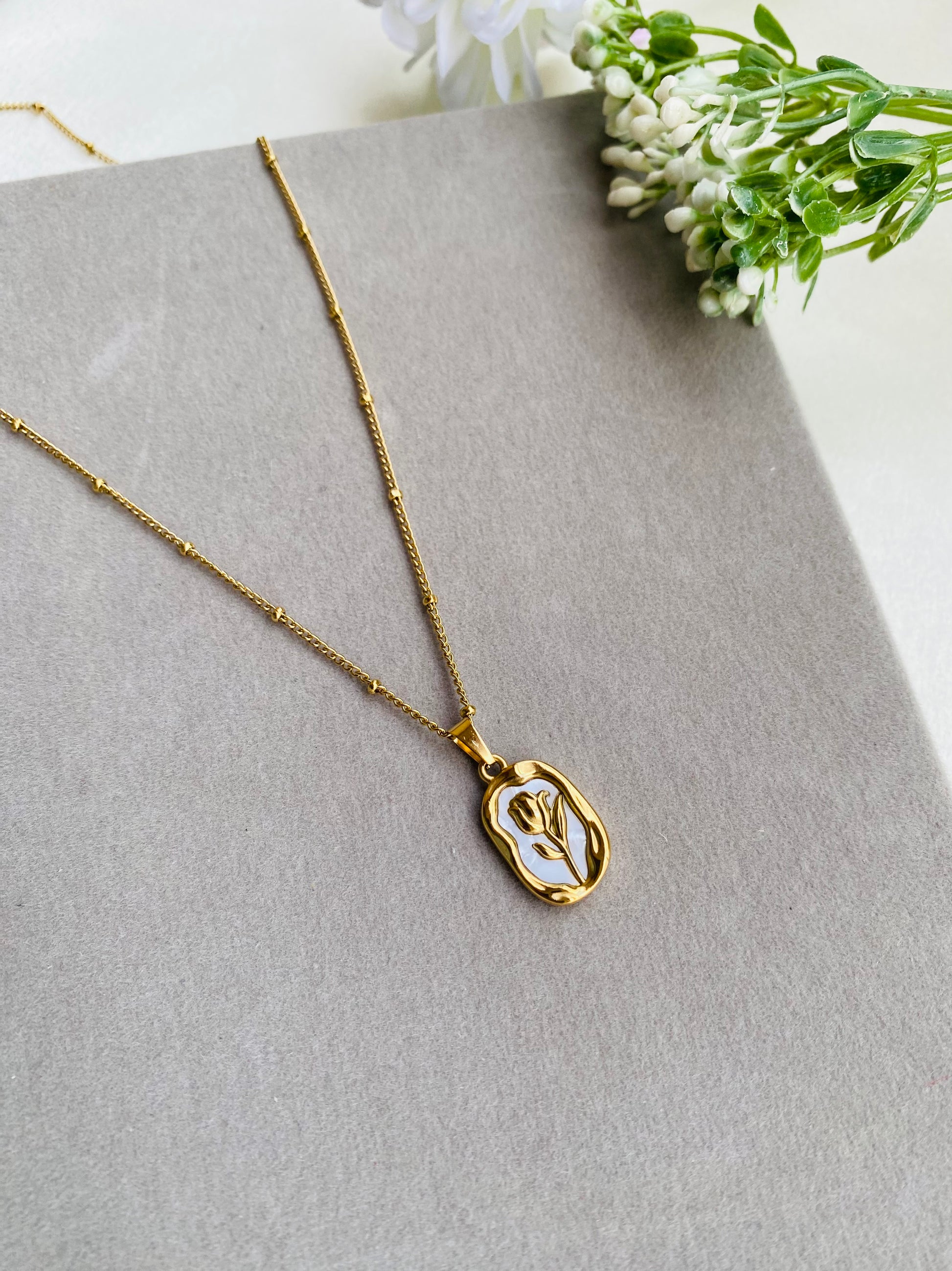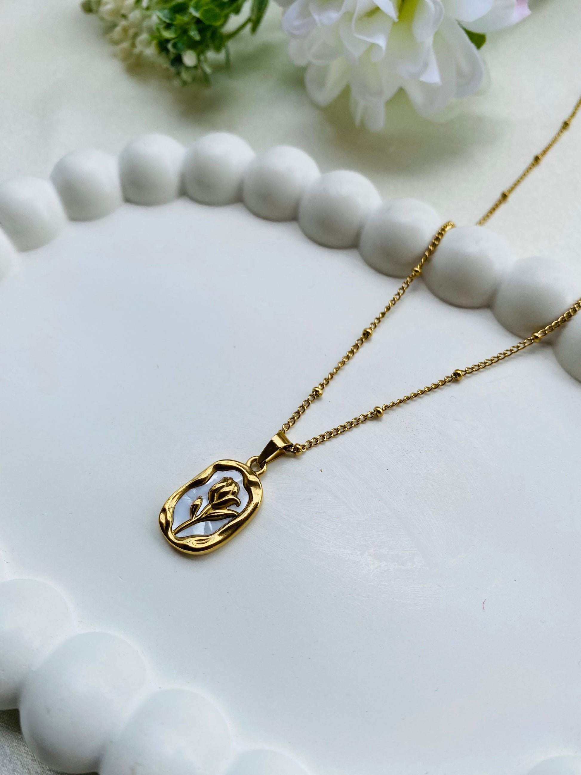 A perfect blend of elegance and durability. This necklace features a stunning white shell pendant, framed in high-quality, tarnish-resistant gold. Designed to maintain its shine, it's crafted from premium waterproof materials, making it suitable for everyday wear without losing its beauty.