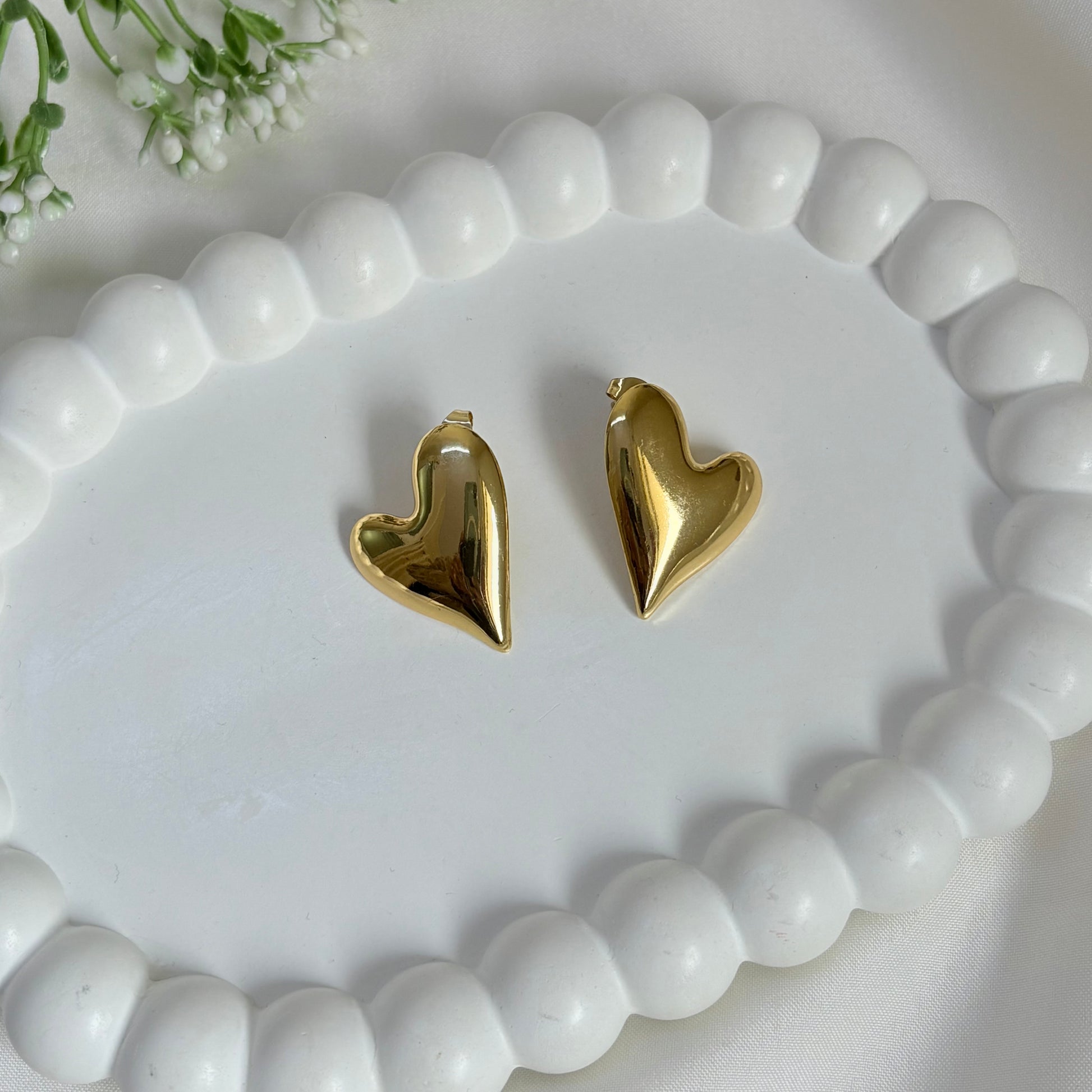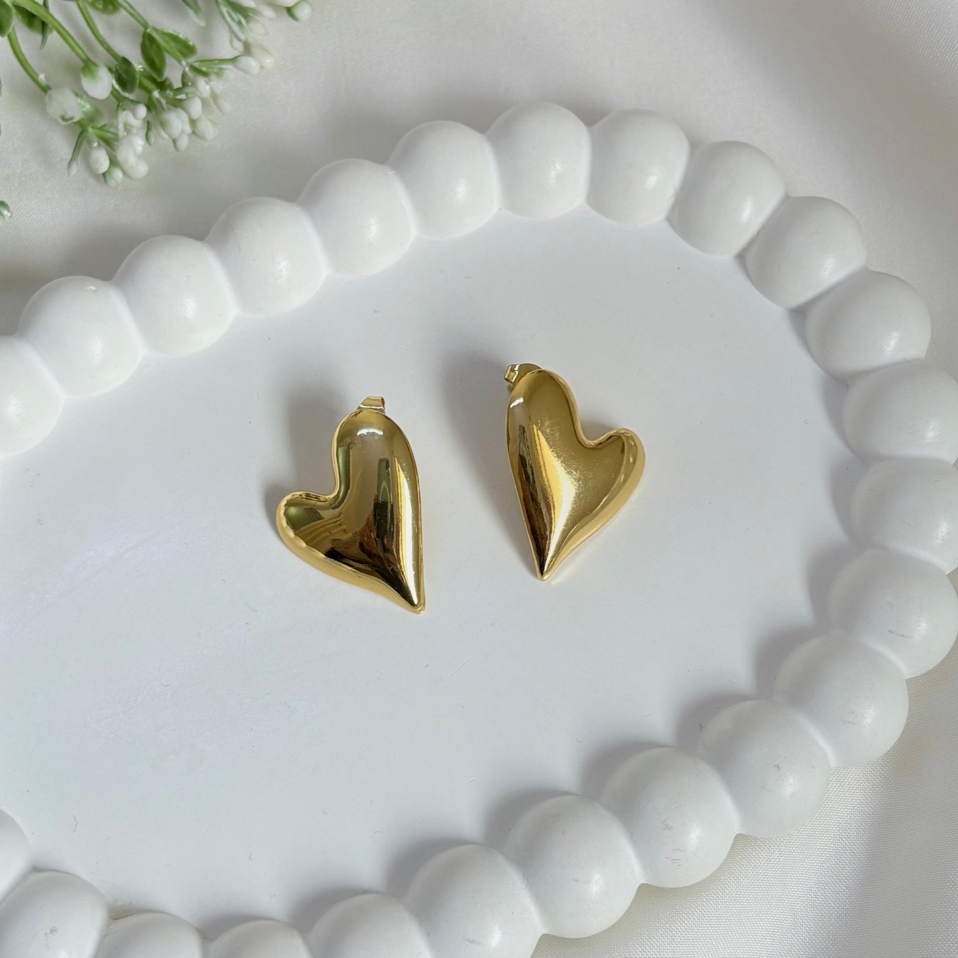 Heart Shaped Gold Pleated Earrings | Waterproof & Tarnish Free