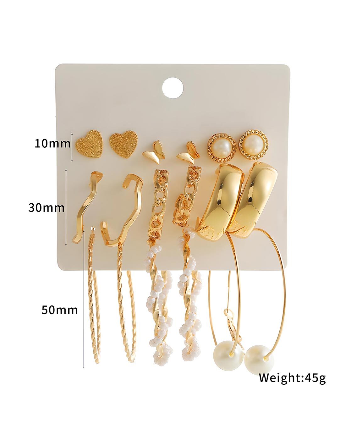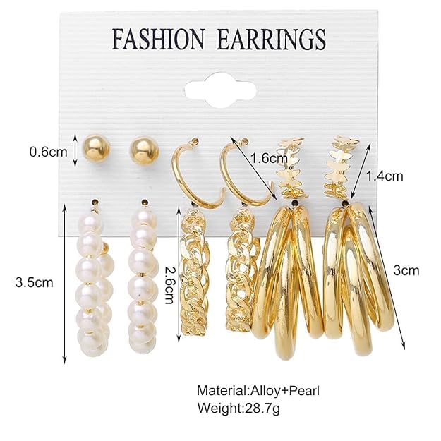 Elegant and minimal, this set of 6 gold-plated earrings is perfect for any occasion, whether it’s a function or a casual outing. Designed to add a touch of sophistication to your look, these lightweight earrings are comfortable to wear all day. Their timeless style makes them a versatile addition to any jewelry collection, effortlessly complementing any outfit.