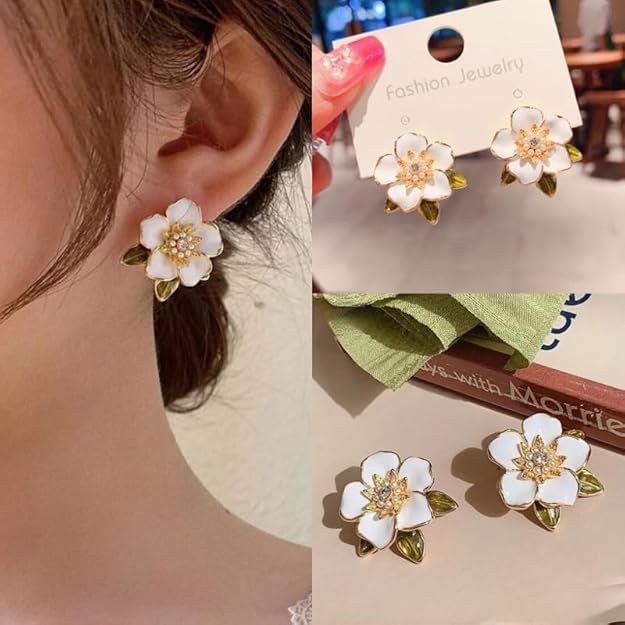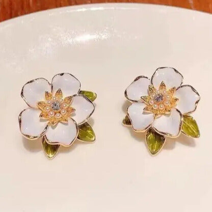 Korean White Flower Earrings