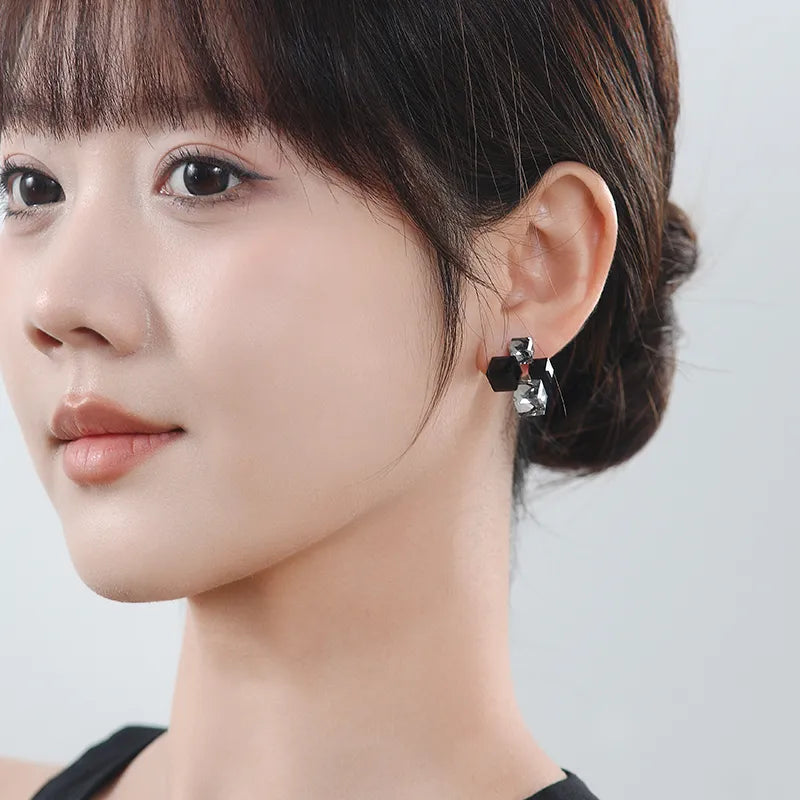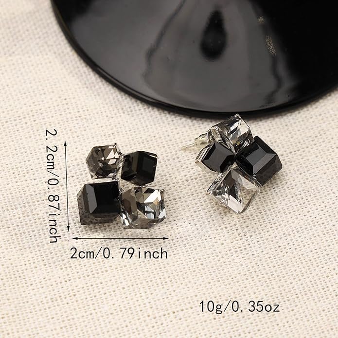 These cube crystal earrings in black and grey are a stunning addition to any jewelry collection. Their sleek, modern design makes them perfect for both everyday wear and special occasions. Whether you're dressing up for an event or adding a touch of elegance to your daily outfit, these earrings will make you look gorgeous.