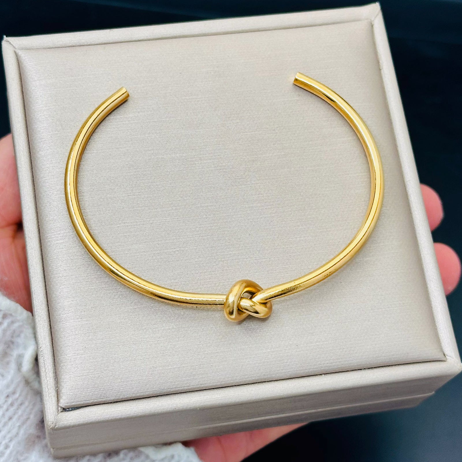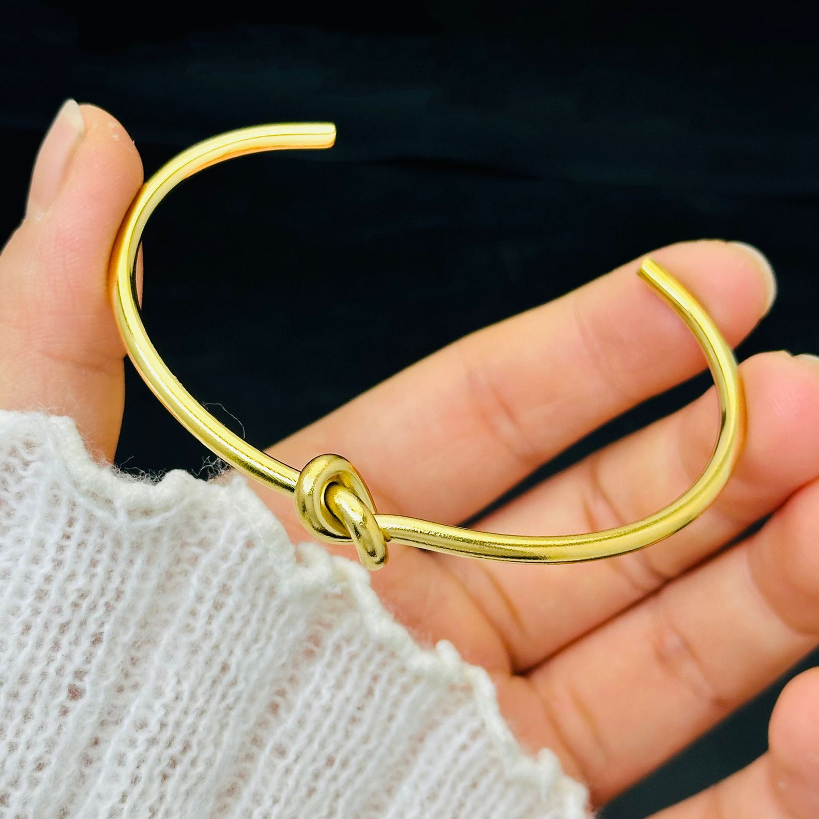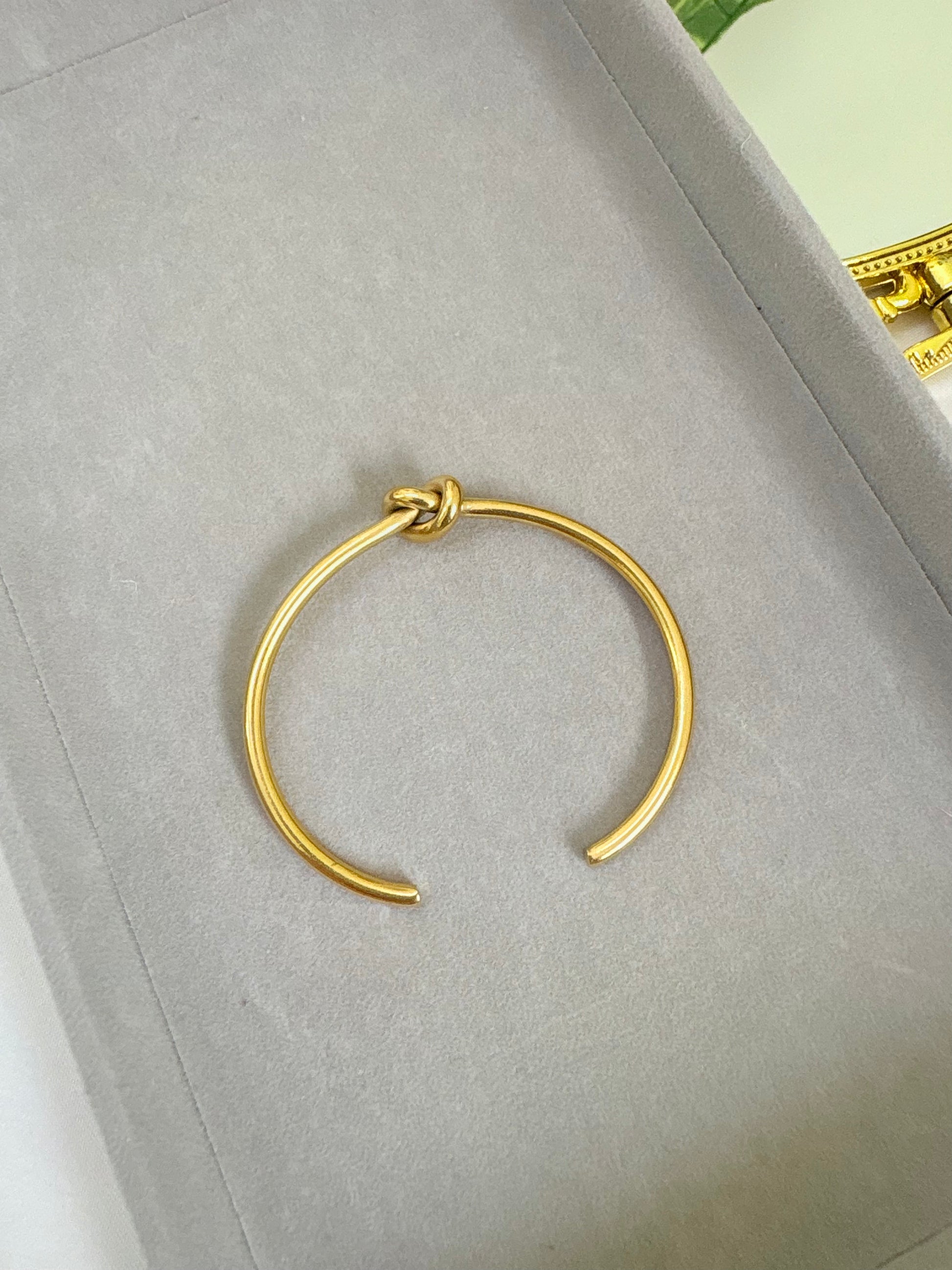 Featuring a sleek knot detail, this bracelet symbolizes connection and unity, making it a meaningful accessory. the open-ended design allows for easy adjustment, ensuring a comfortable and secure fit for wrists of all sizes.