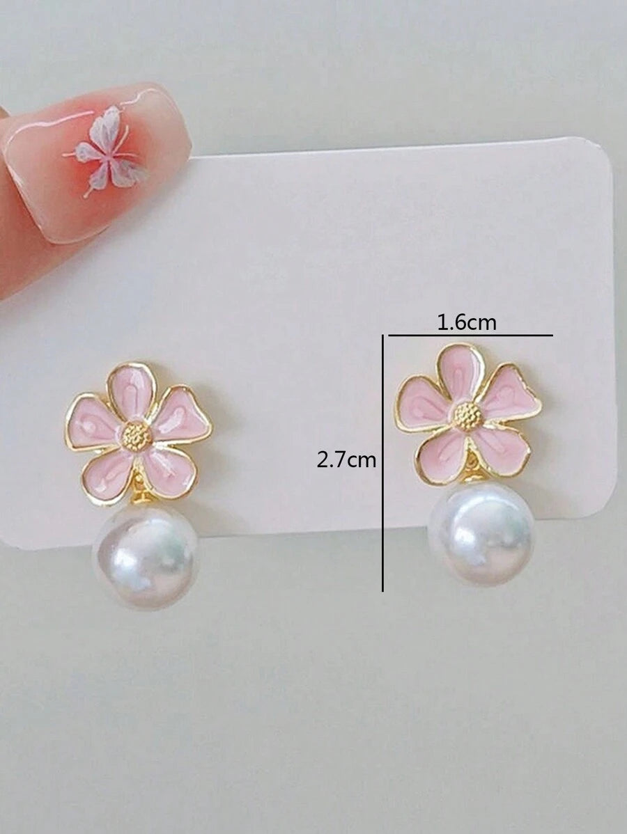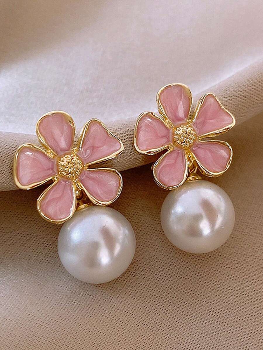Pearl & Flower Statement Earrings are striking accessories that combine the elegance of pearls with the beauty of floral motifs. These earrings often feature large, intricate flowers made from materials like metal, enamel, or resin, with pearls serving as the centerpiece or as dangling accents. The contrast between the delicate flowers and the classic pearls creates a bold yet sophisticated look, making these earrings a perfect choice for special occasions or as a standout piece in a stylish outfit.