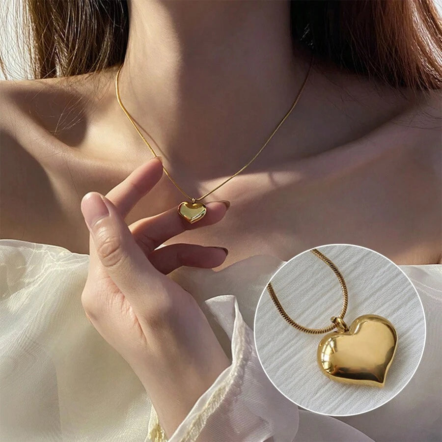 The heart-shaped pendant exudes a sweet and feminine charm, perfect for adding a touch of elegance to any outfit. Its smooth, polished surface and delicate design make it a standout piece that complements both casual and formal attire.