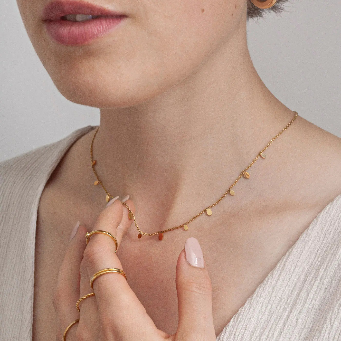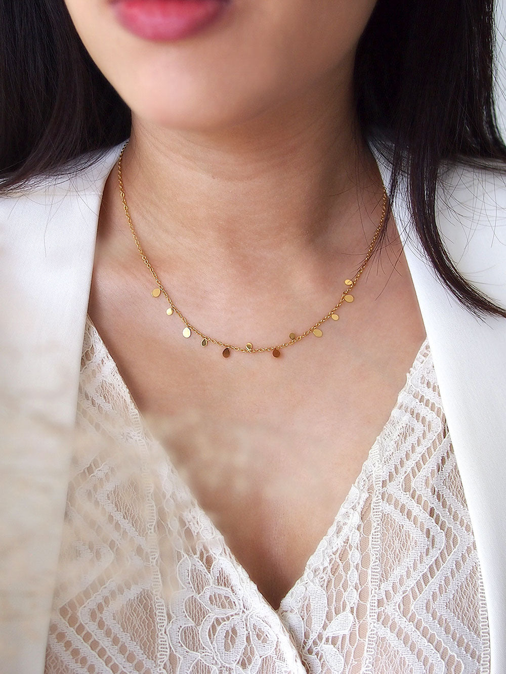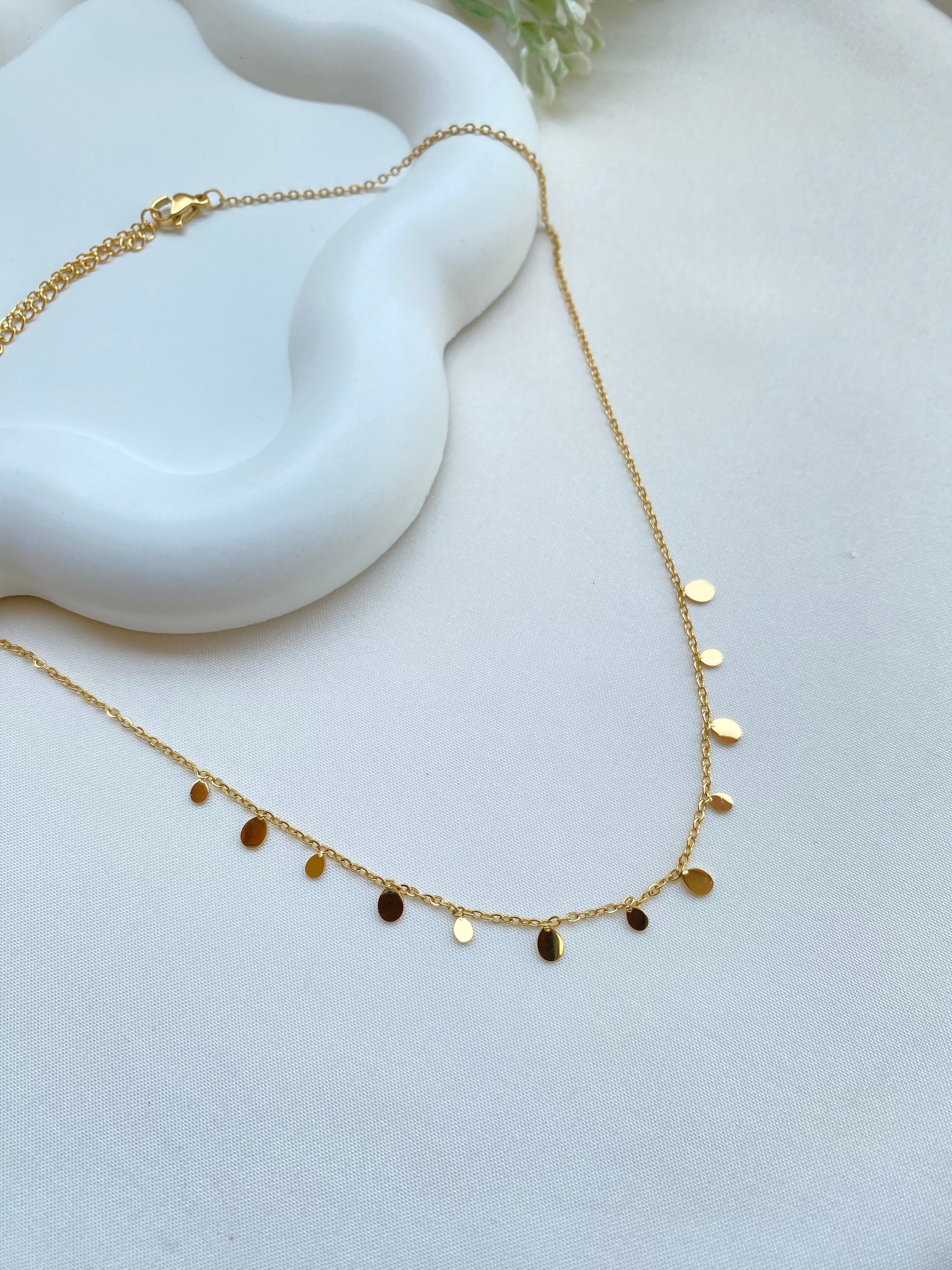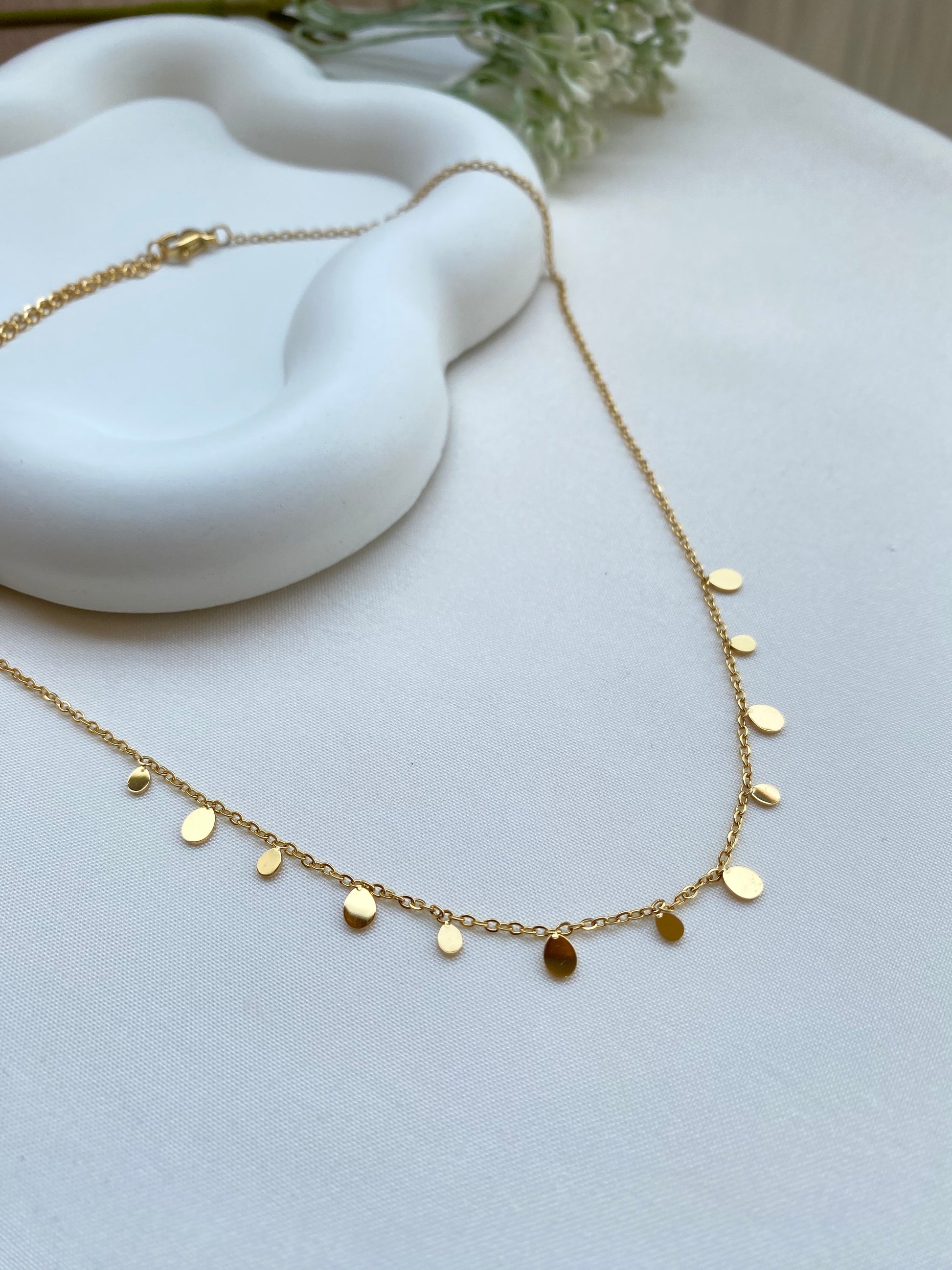Introducing our new Stainless Steel Collection, designed for those who live life to the fullest. Our total waterproof jewelry allows you to shower, swim, and exercise without worrying about tarnishing your favorite pieces. The highlight of this collection is the perfect layering necklace, crafted with a thin chain adorned with cute oval discs.