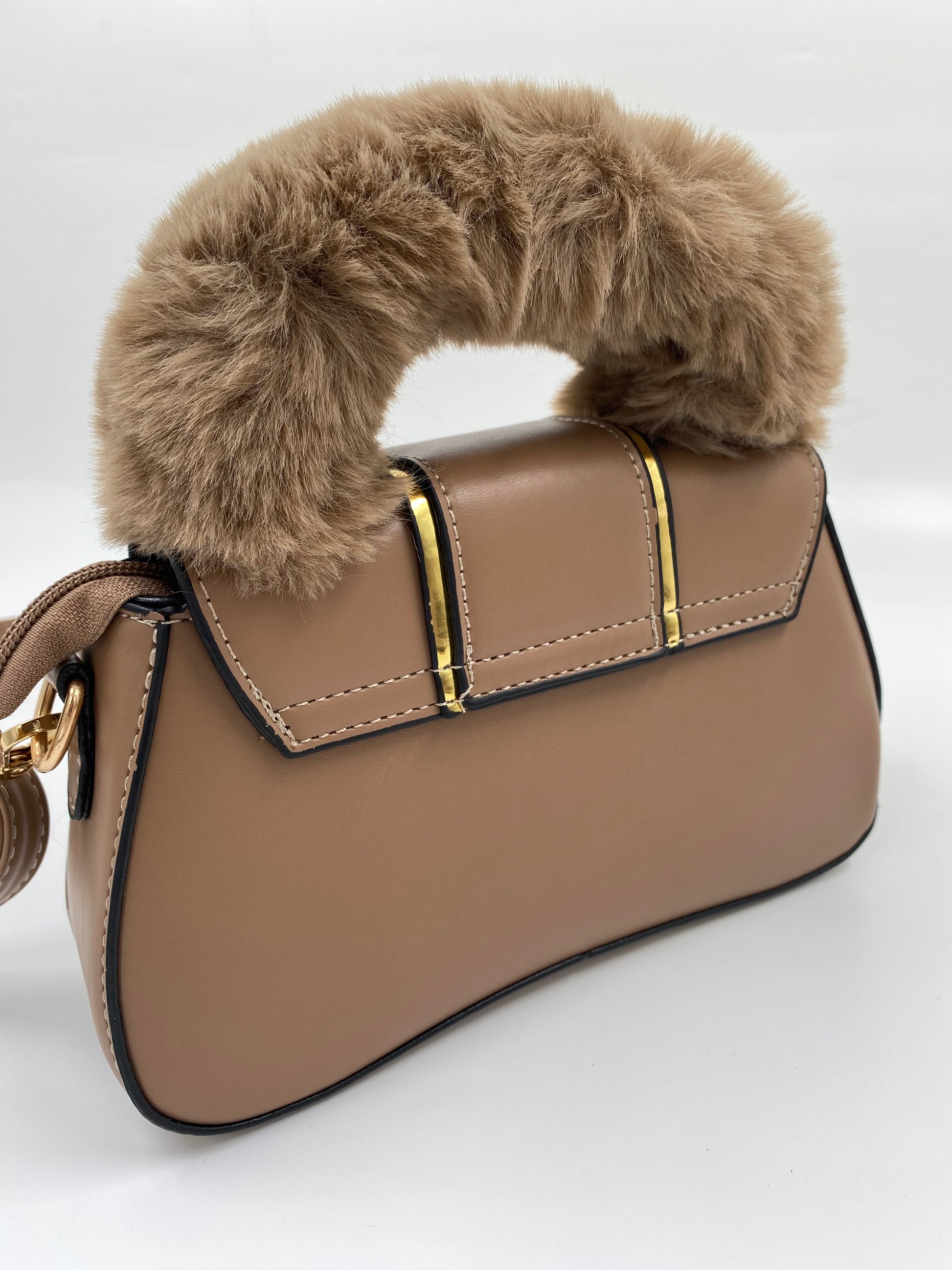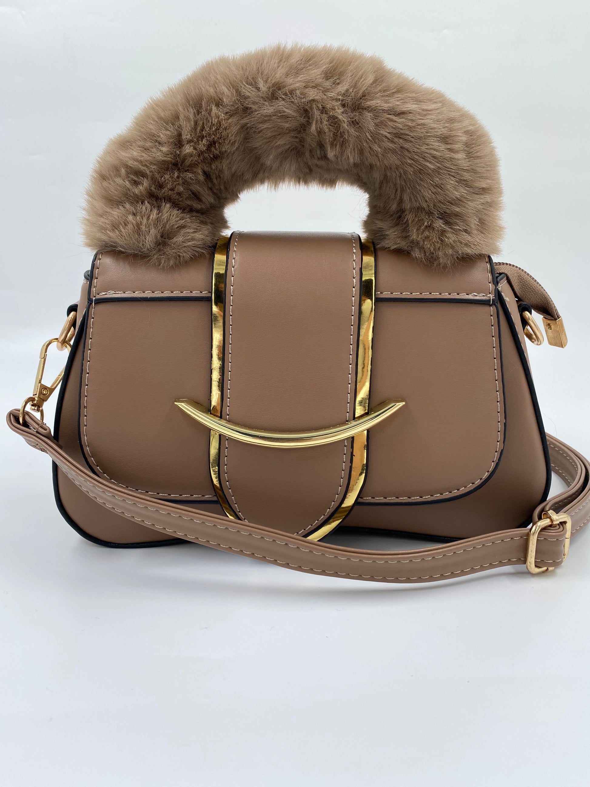 Brown solid sling bag 1 main compartment, has a button closure, Tablet sleeve: no
