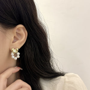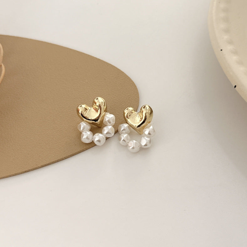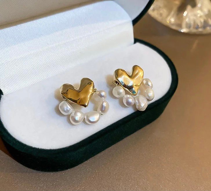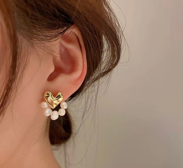 These exquisite earrings feature lustrous pearl beads and delicate gold heart shapes, making them a perfect accessory for any occasion. Whether you're dressing up for a special event or adding a touch of elegance to your everyday look, these earrings are versatile enough to complement any outfit.