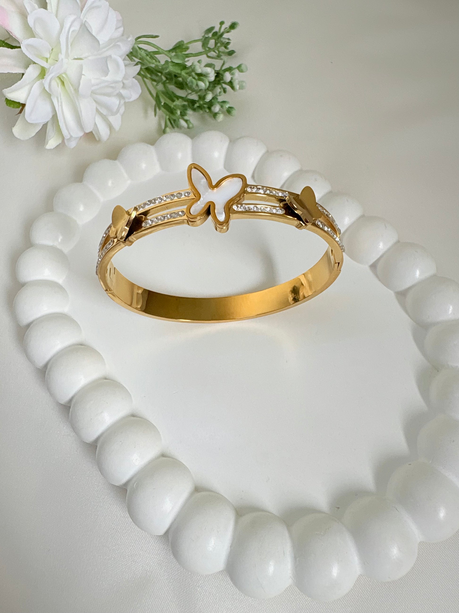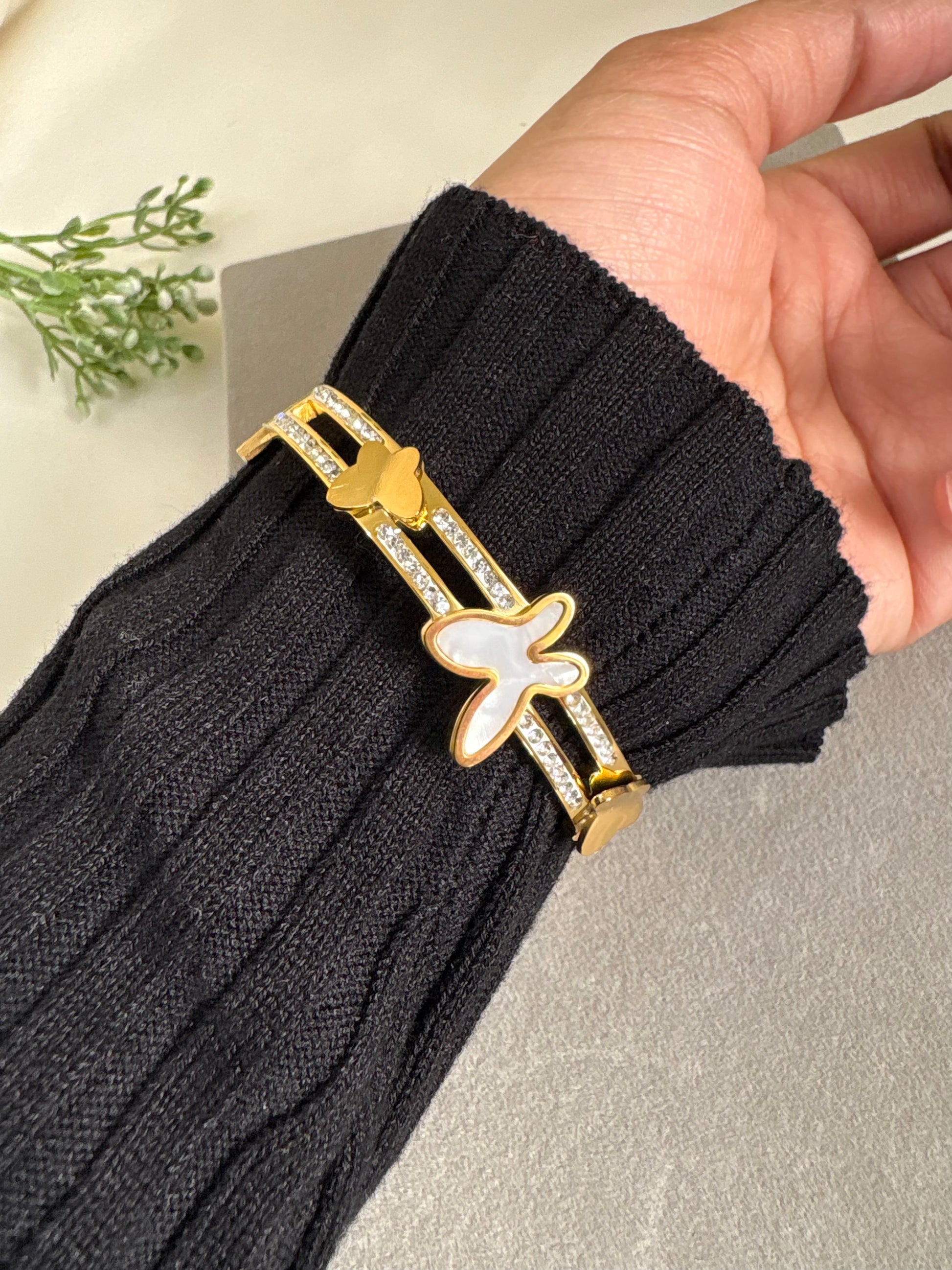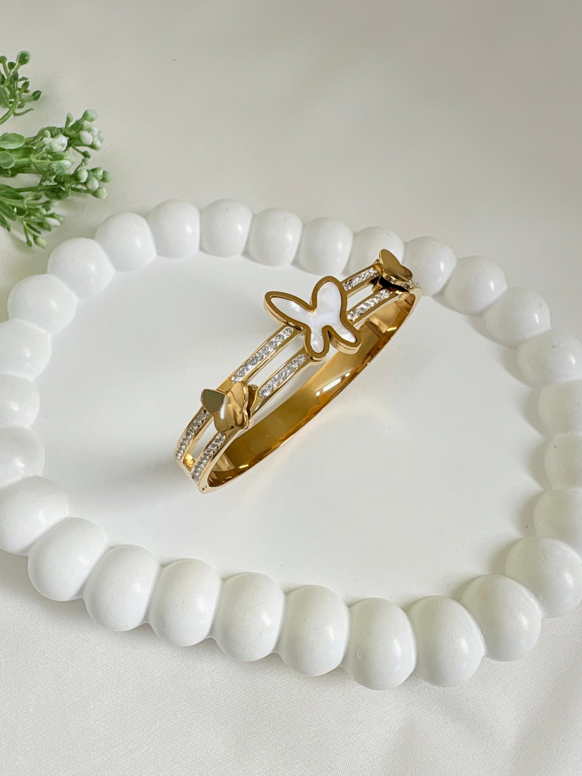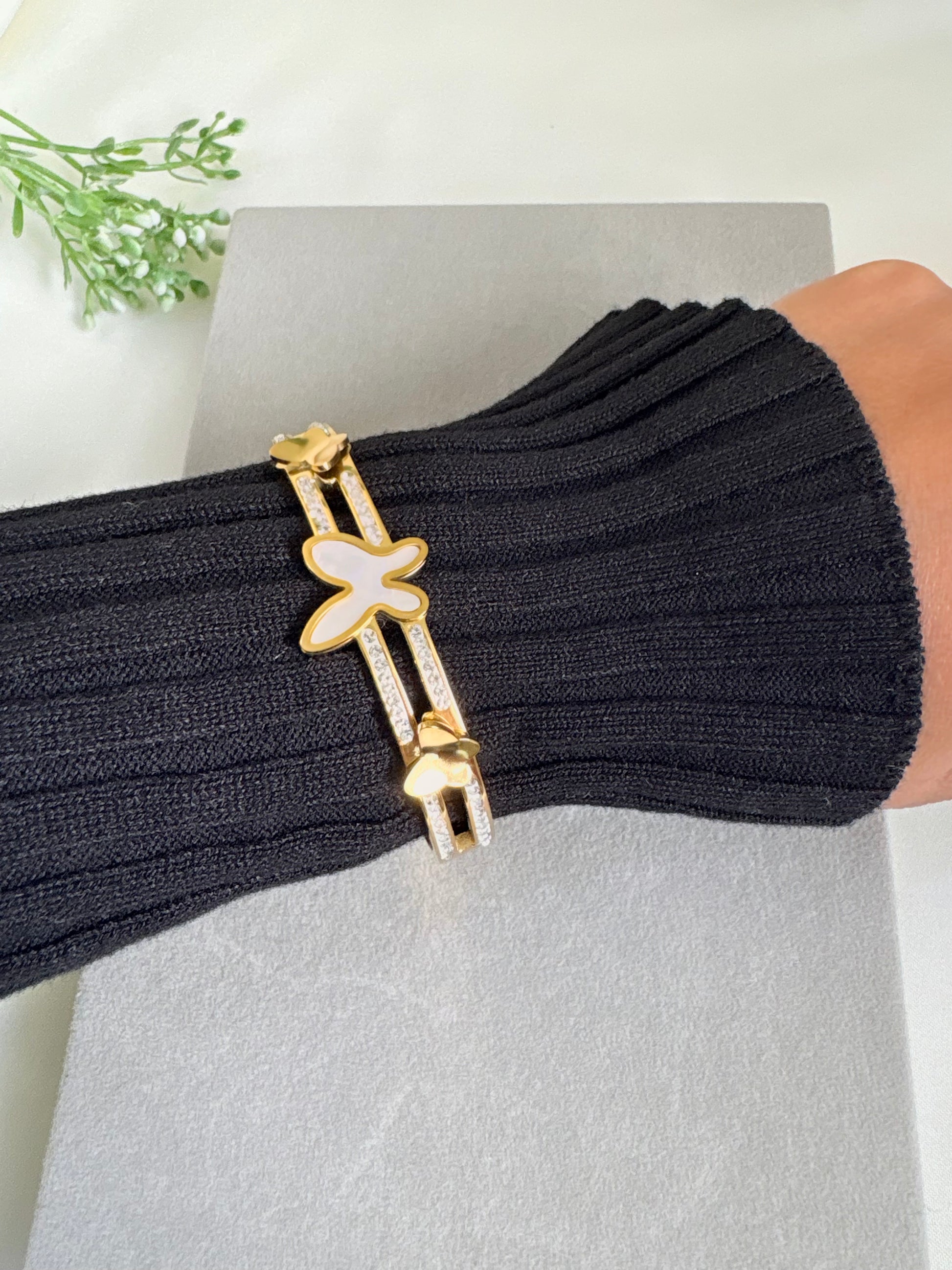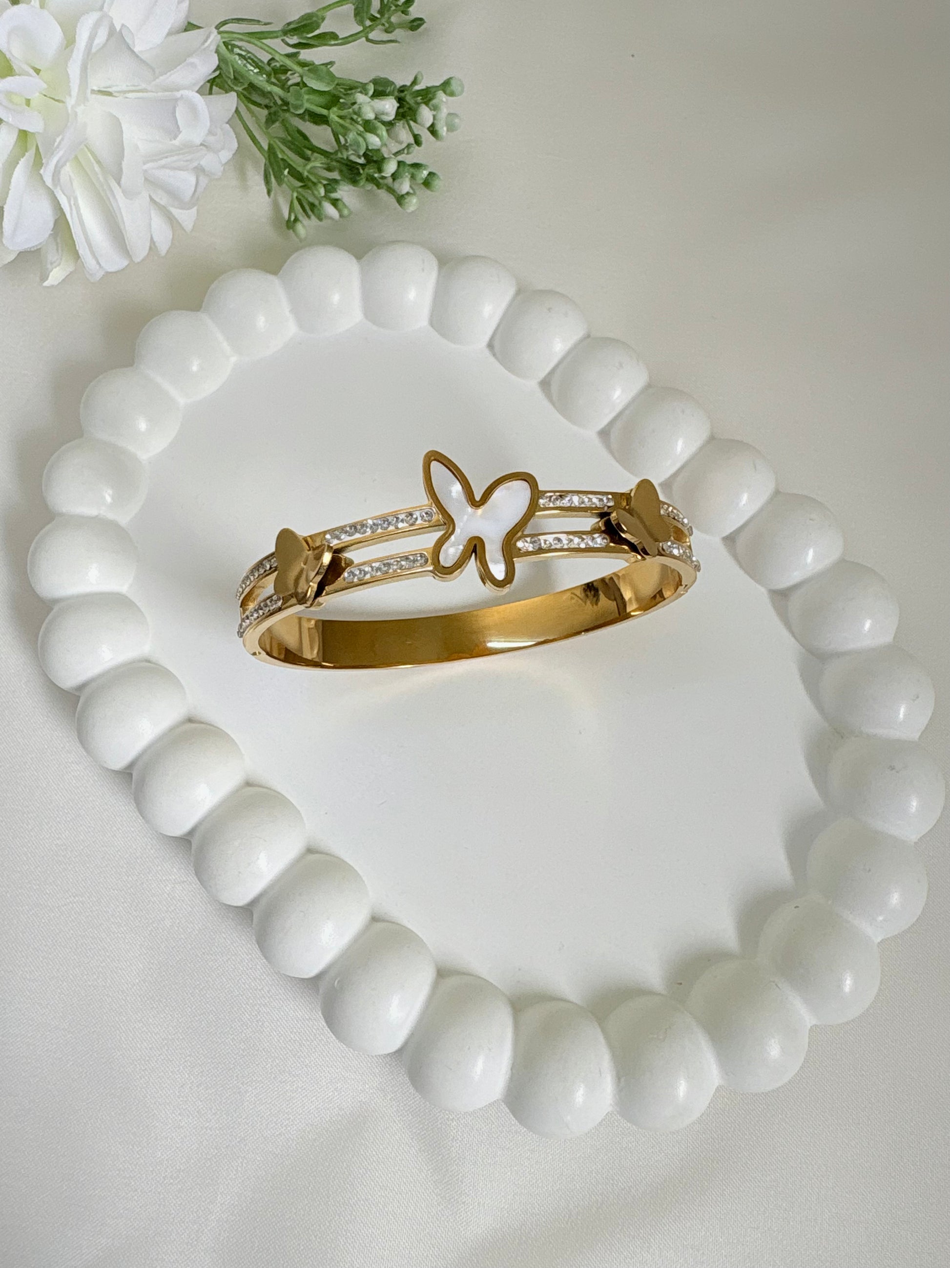 Butterfly Sparkling Cubic Zirconia Gold Pleated