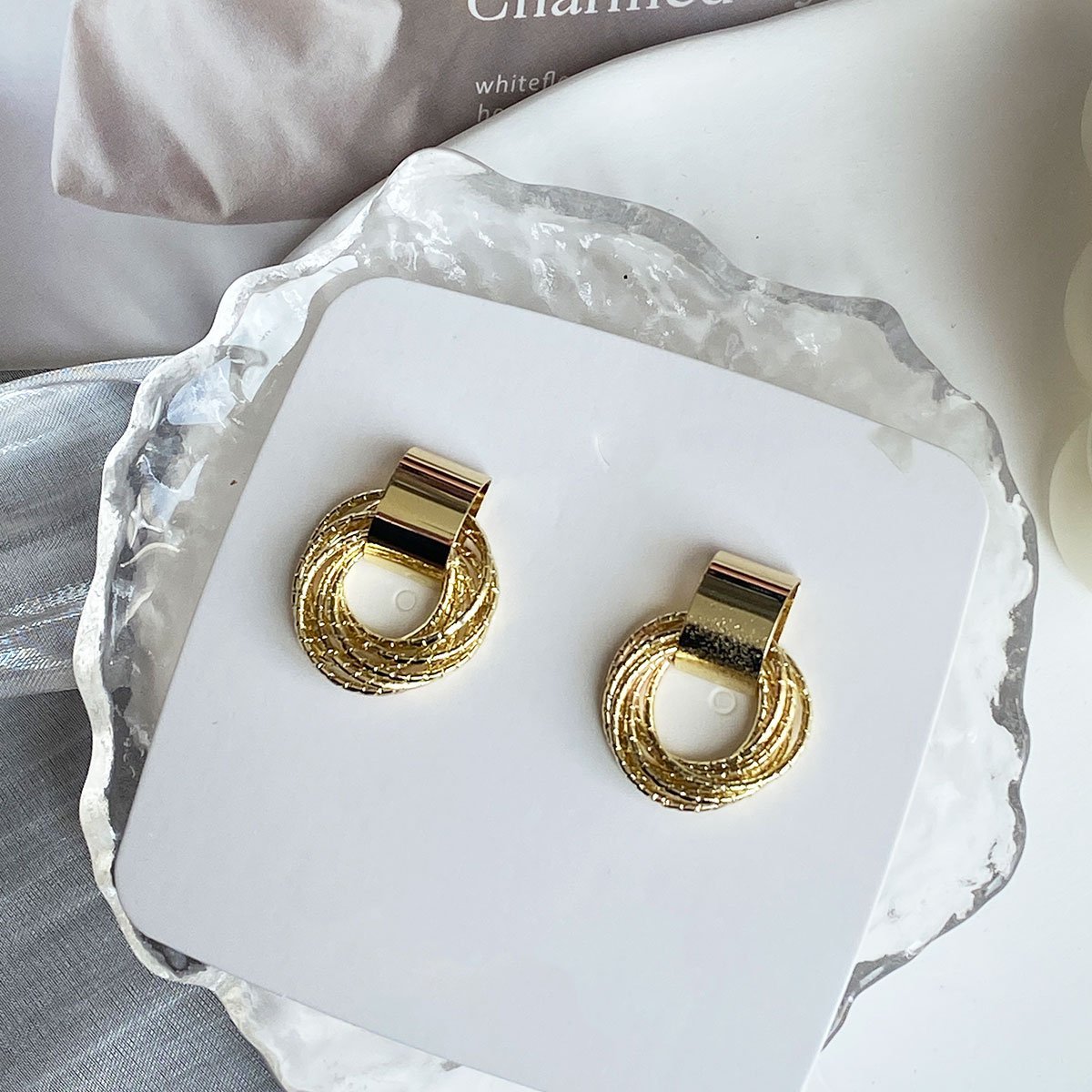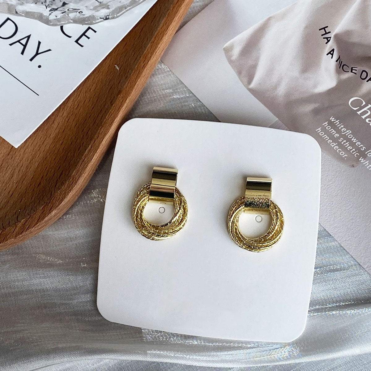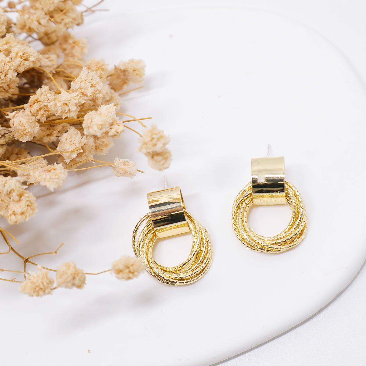 Enhance your look with these Elegant Gold Hoop Layered Stud Earrings, designed to add a touch of sophistication to any outfit.