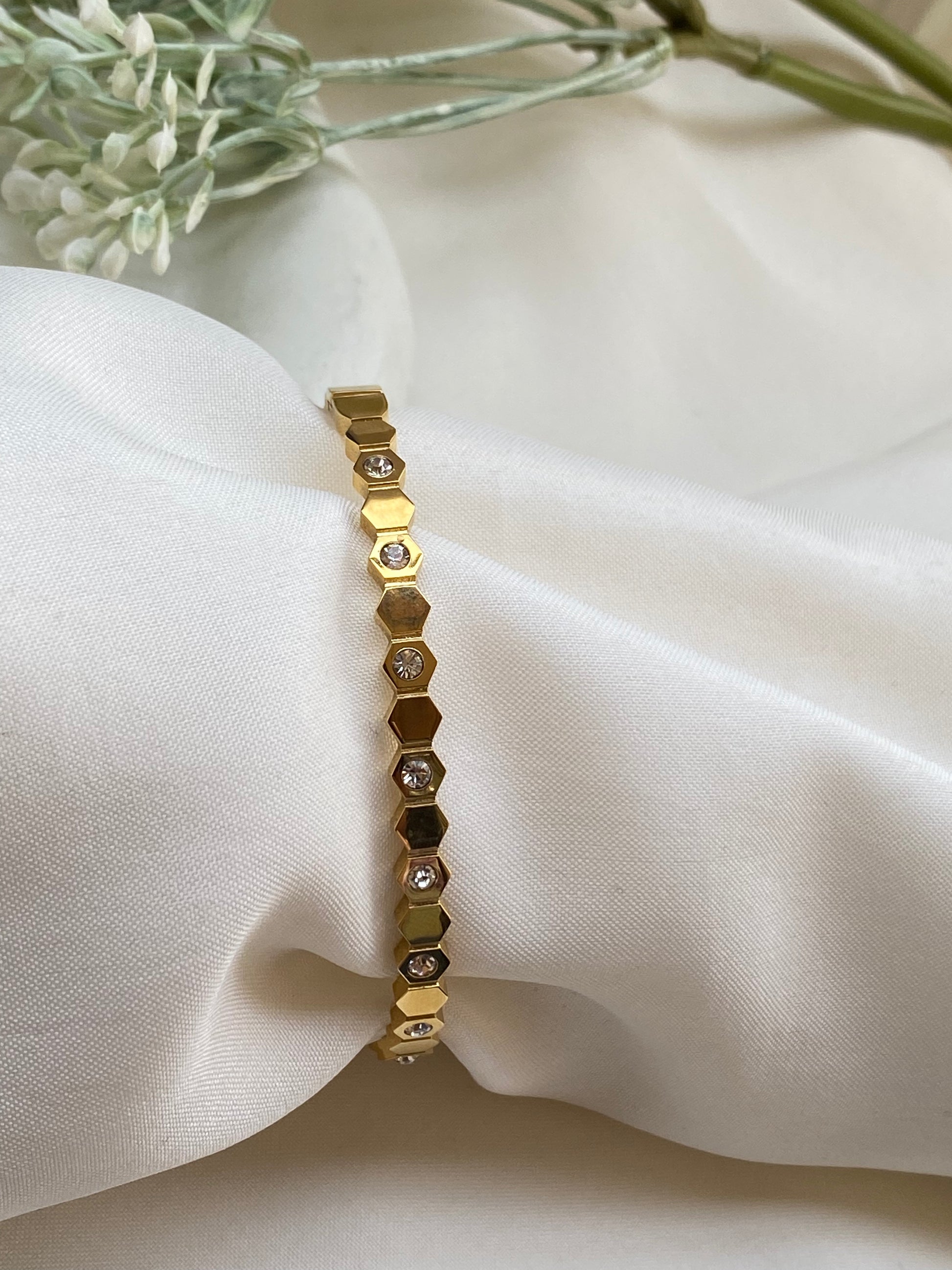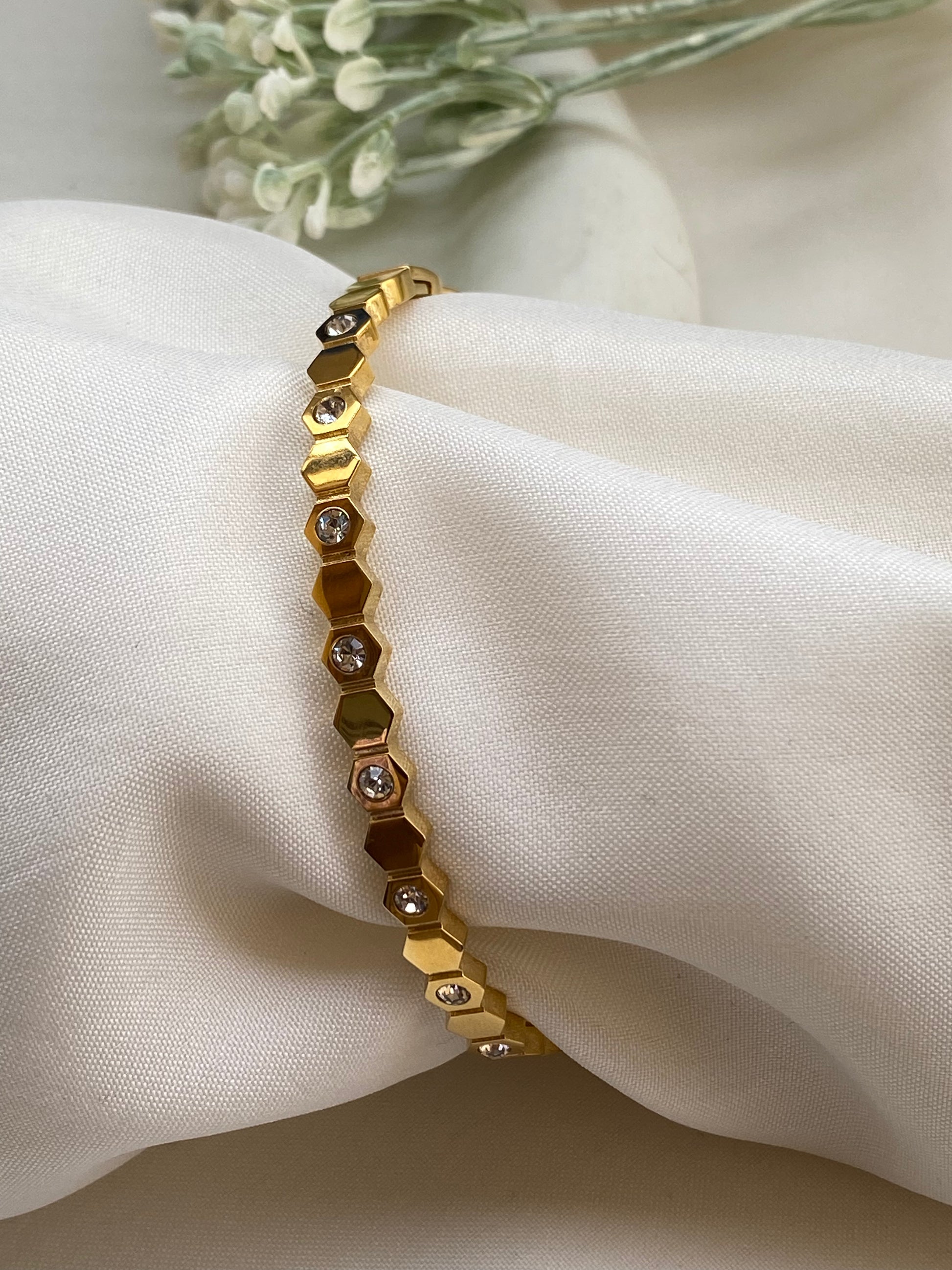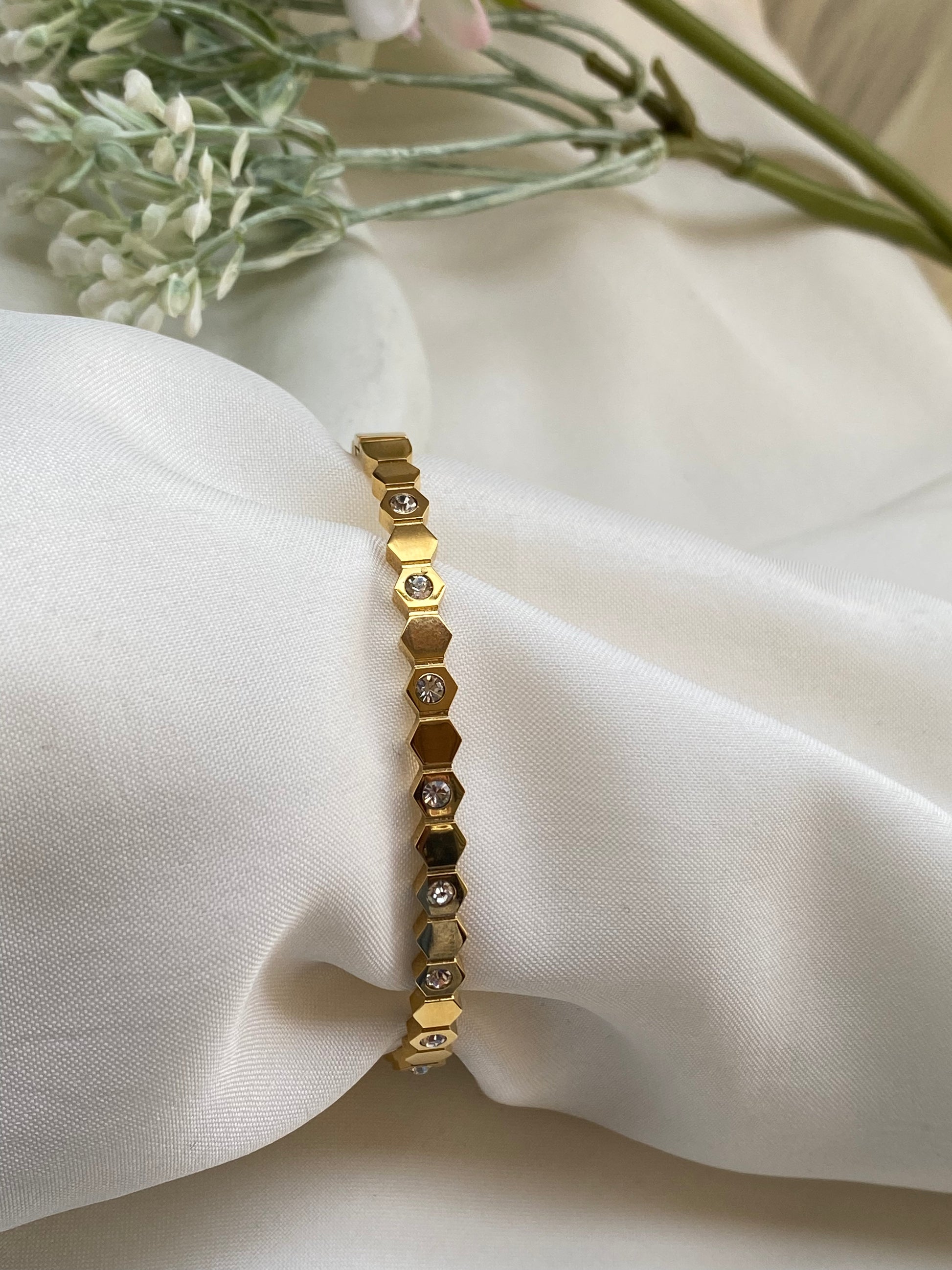 This bracelet is your go-to for both day and night. Pair it with your casual outfits for a subtle hint of glamour or let it complement your evening wear with its charming sparkle.