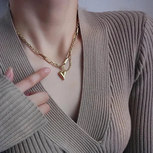 The heart-shaped pendant exudes a sweet and feminine charm, perfect for adding a touch of elegance to any outfit. Its smooth, polished surface and delicate design make it a standout piece that complements both casual and formal attire.