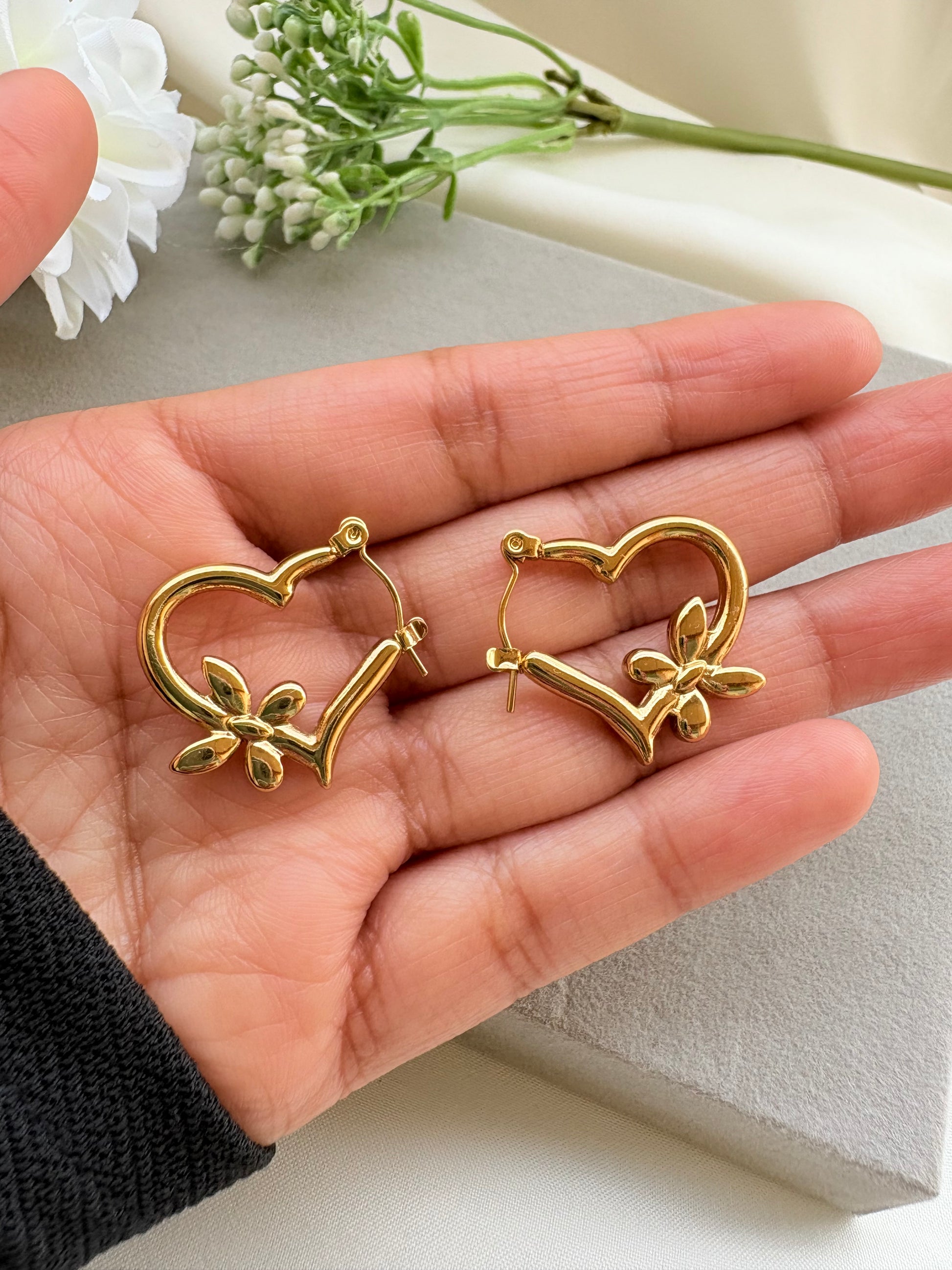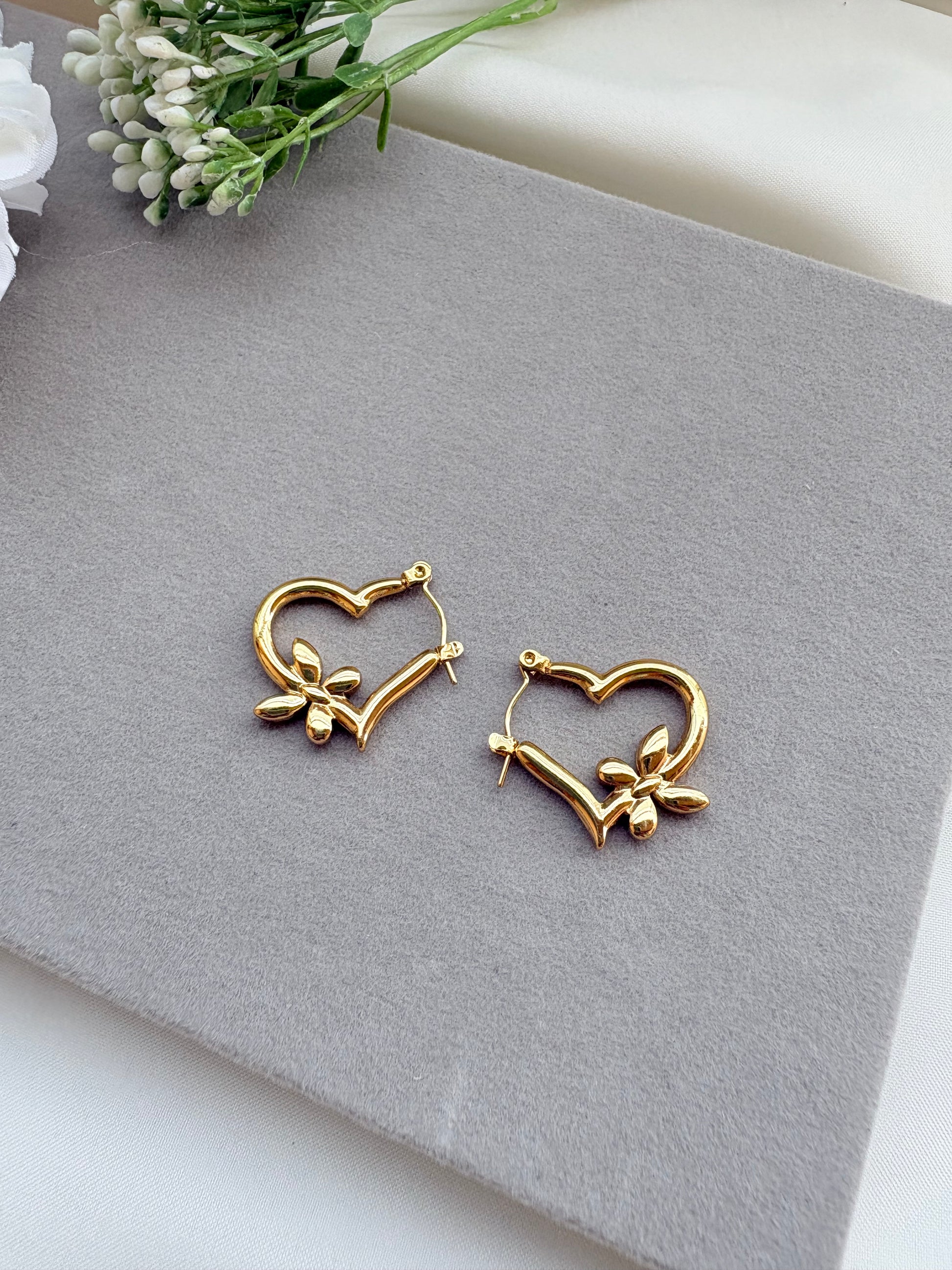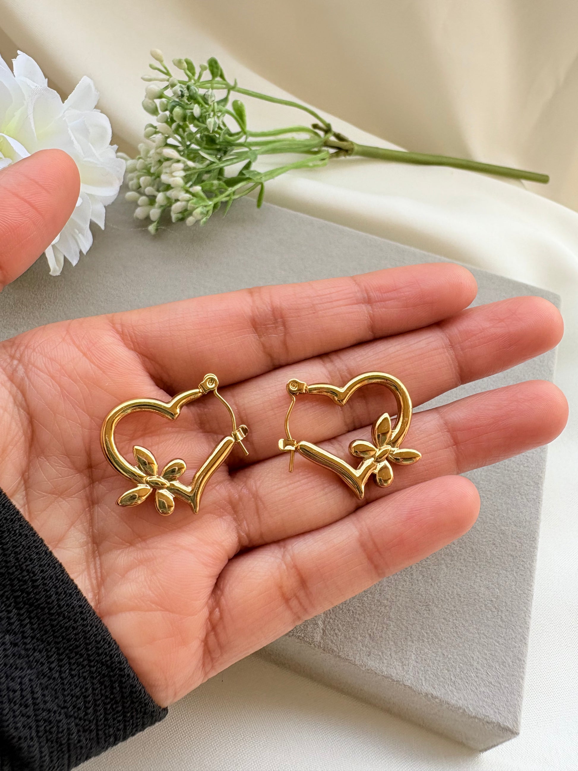 Heart And Butterfly Shaped Hoop Earrings - Anti-Tarnish
