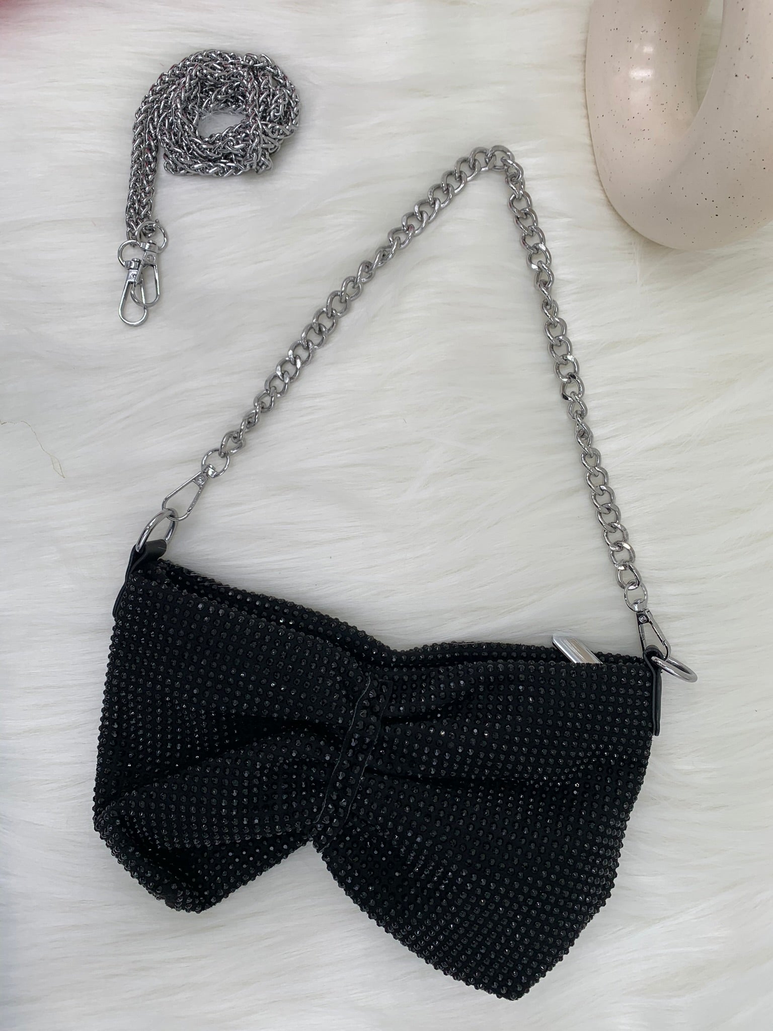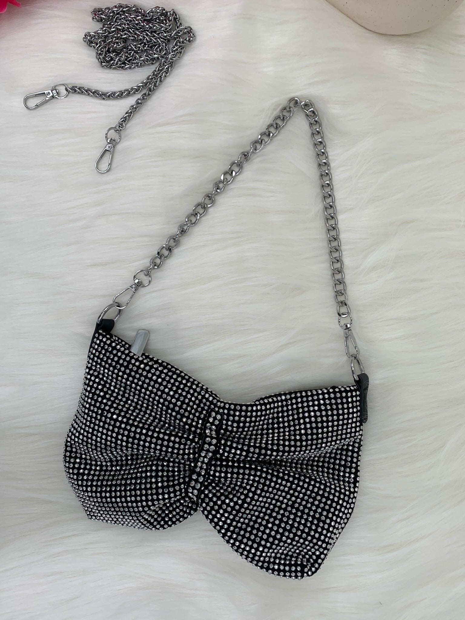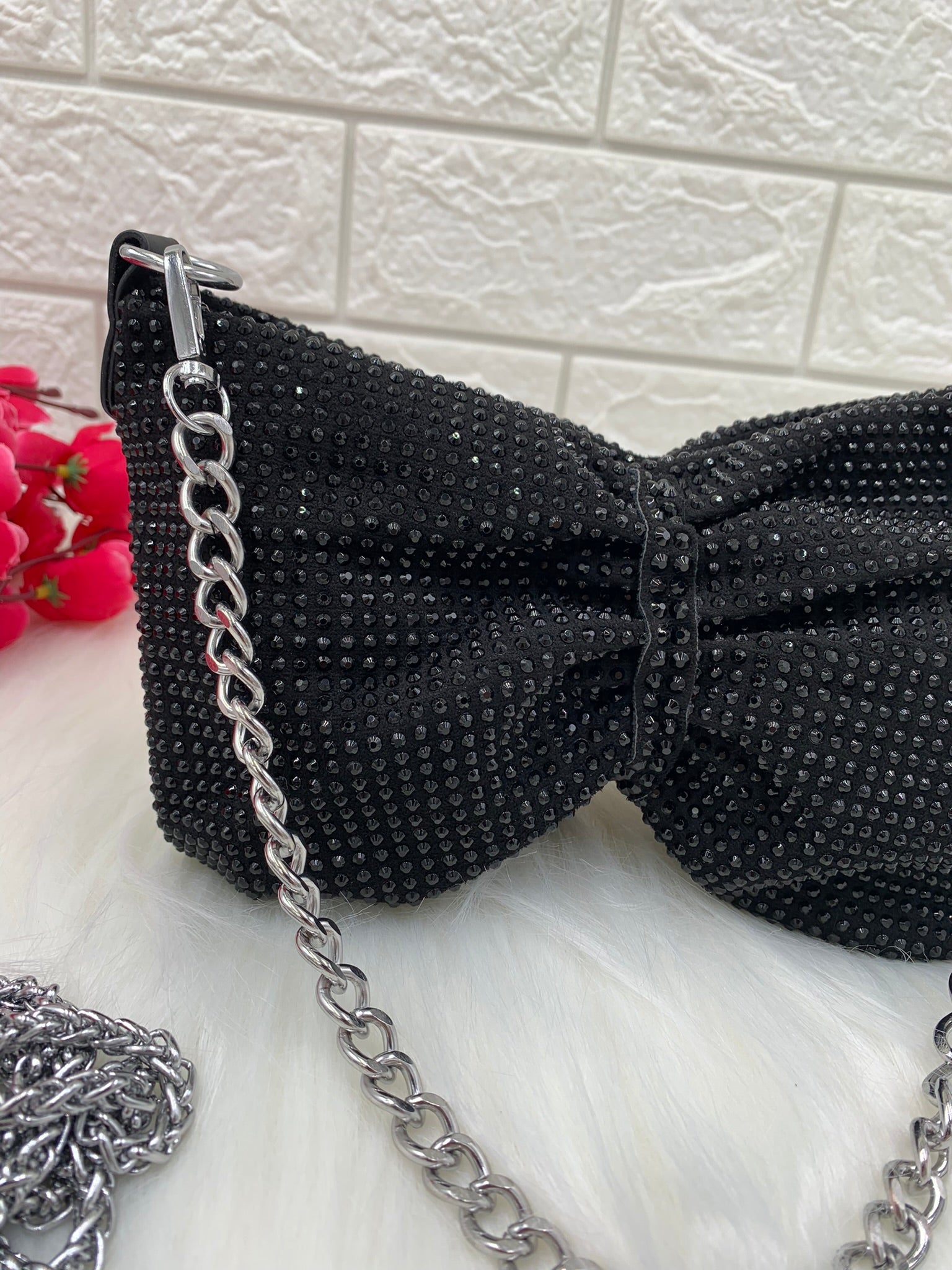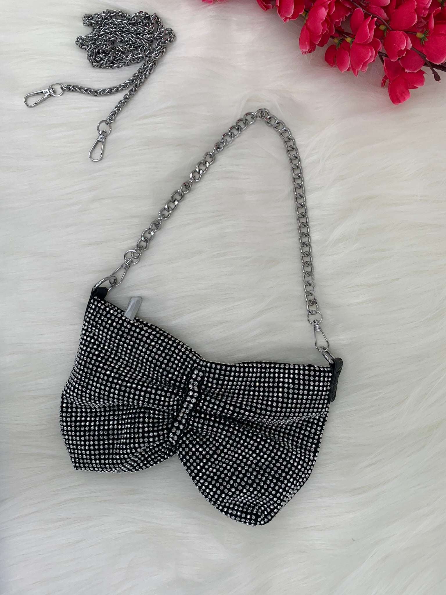 Bow Look Stone-Embellished Shoulder Bag with Sling Chain