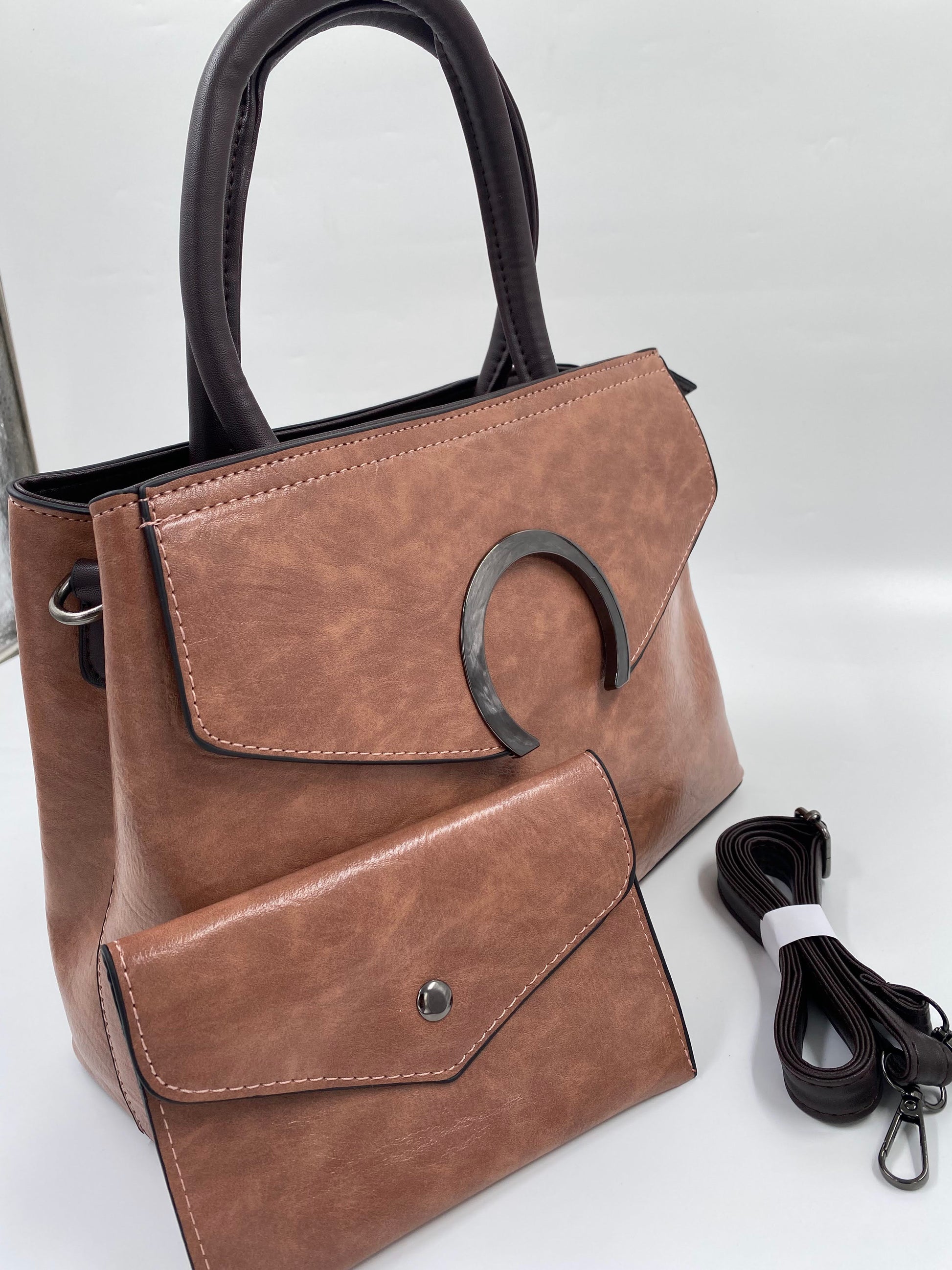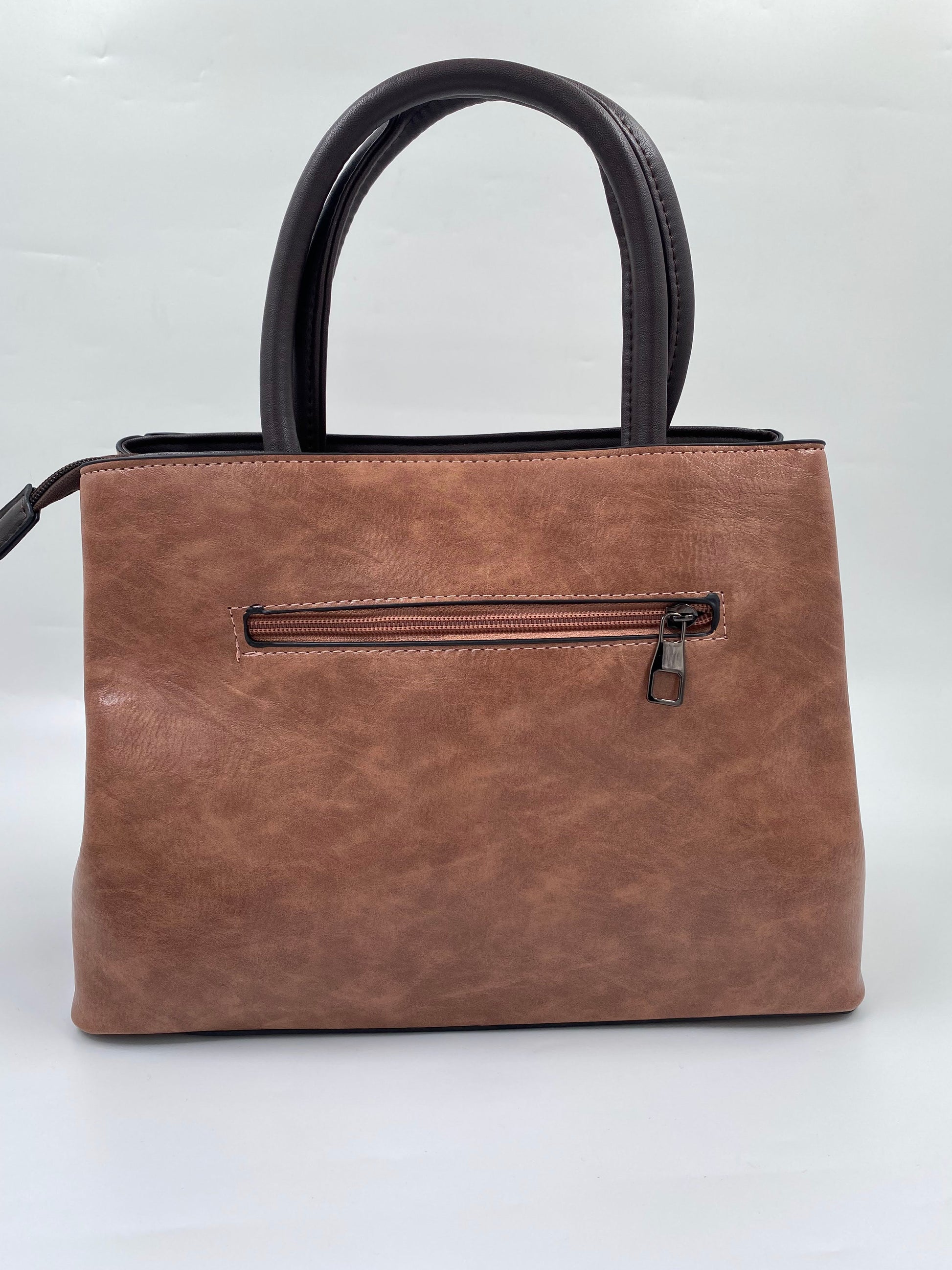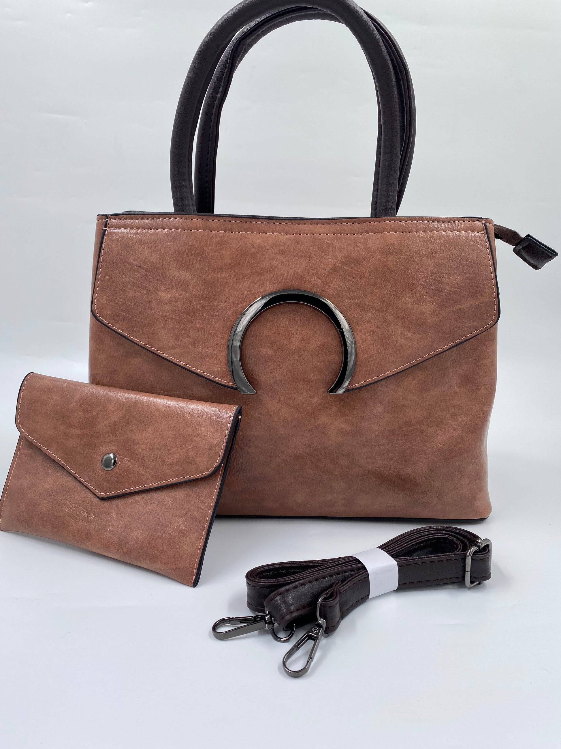 A stylish and functional satchel featuring a spacious main compartment with a zip closure, one external pocket, and three inner pockets for easy organization. Designed for versatility, it comes with a sturdy handle, a detachable sling strap, and a matching pouch for added convenience. Perfect for everyday use.