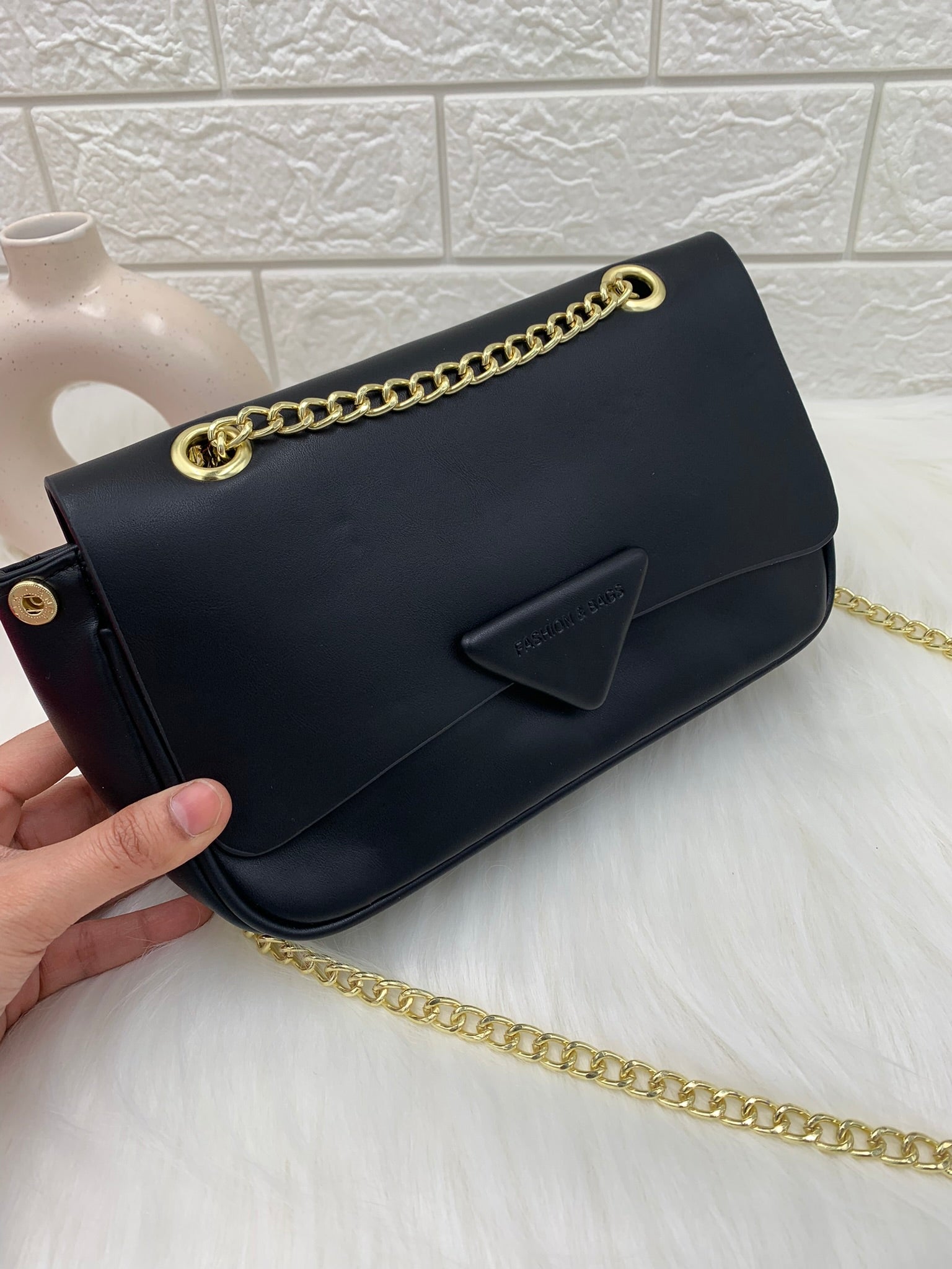 1 main compartment, has a button closure, 1 external pocket, 1 inner pockets