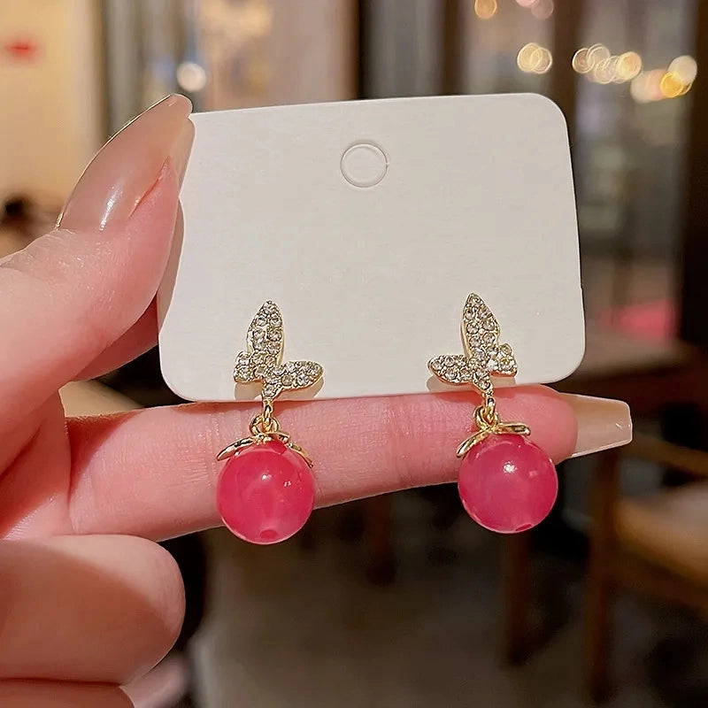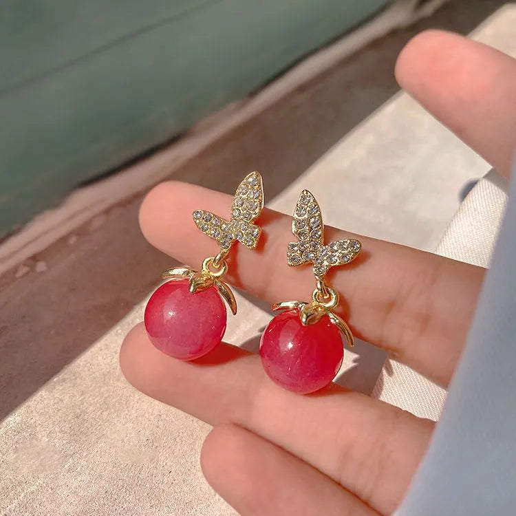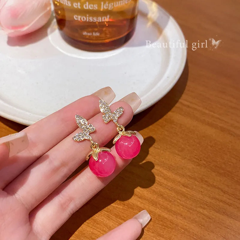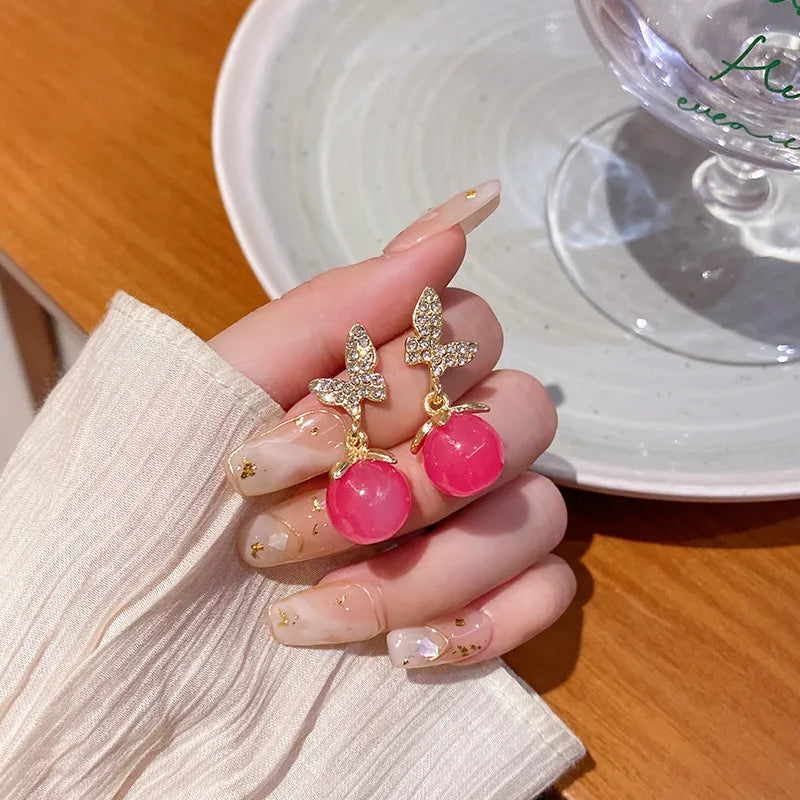 Elevate your western wear with our stunning Cherry Blossom Butterfly Rhinestone Earrings. These exquisite earrings feature a charming cherry design delicately embellished with sparkling rhinestones that catch the light beautifully. The playful butterfly accents add a touch of whimsy, making these earrings the perfect statement piece for any outfit.