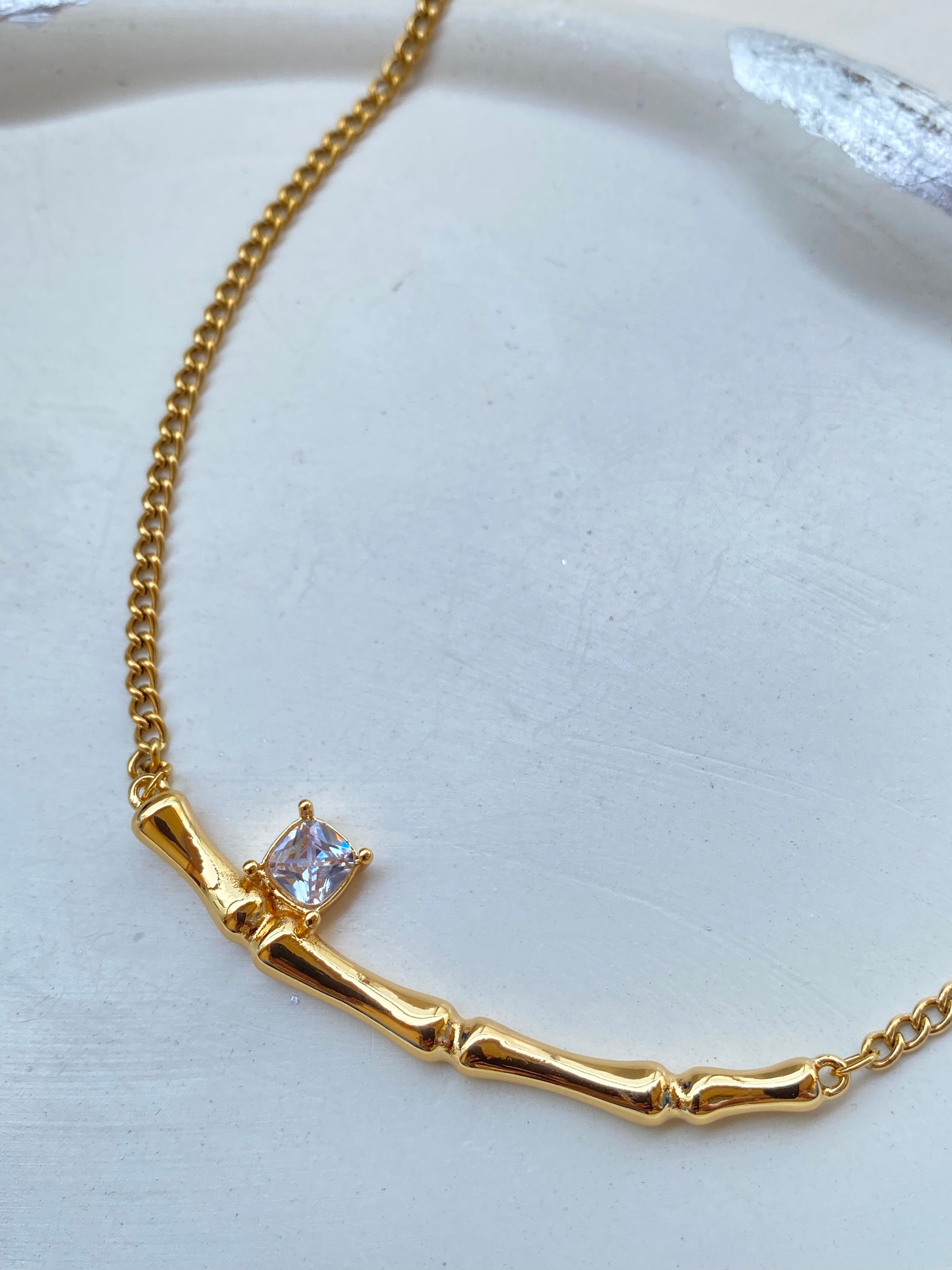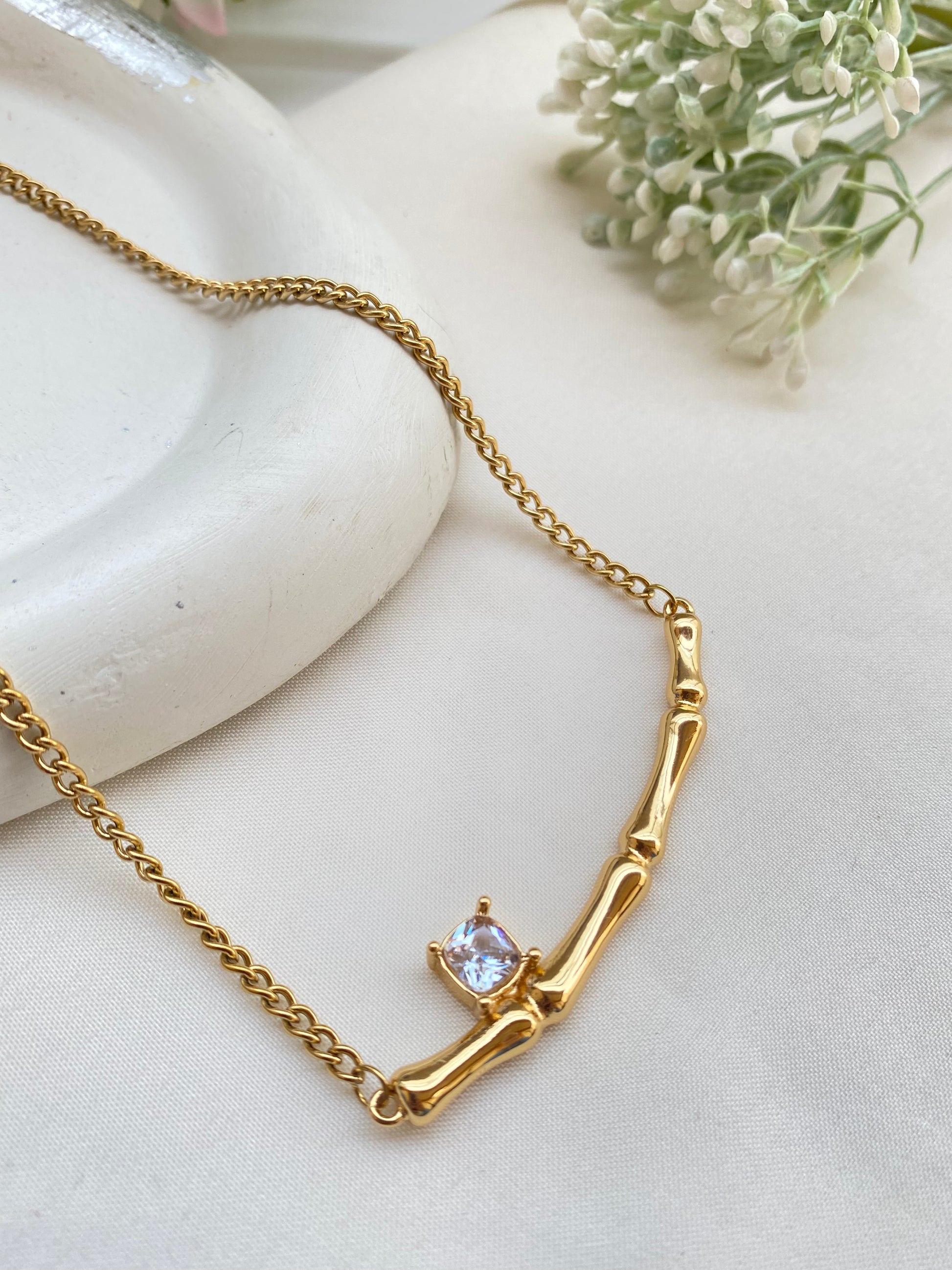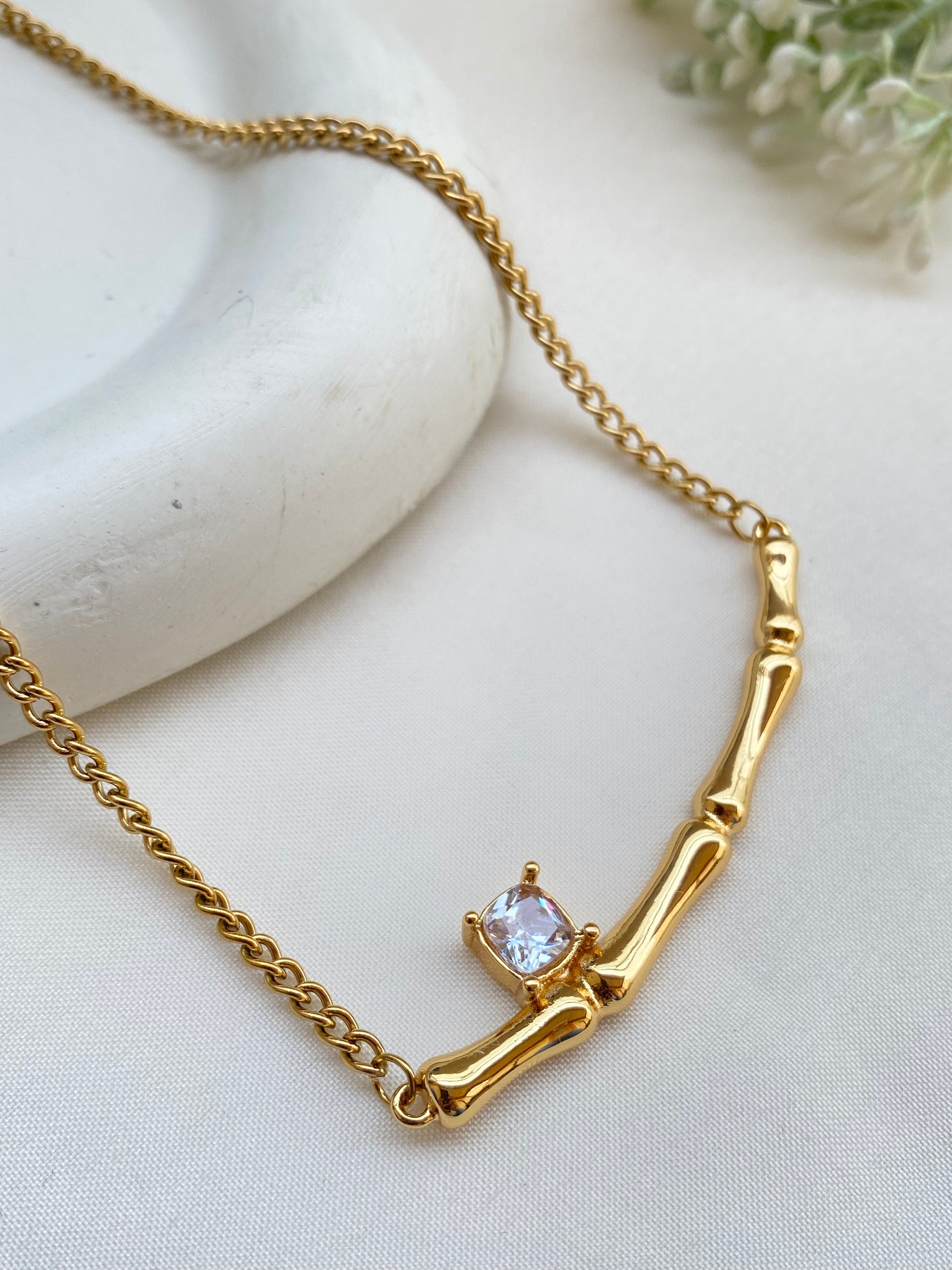 This necklace is crafted with care, featuring a gorgeous gold-plated finish that stays shiny without tarnishing, no matter how often you wear it. It's like a little piece of luxury that keeps shining, day after day.