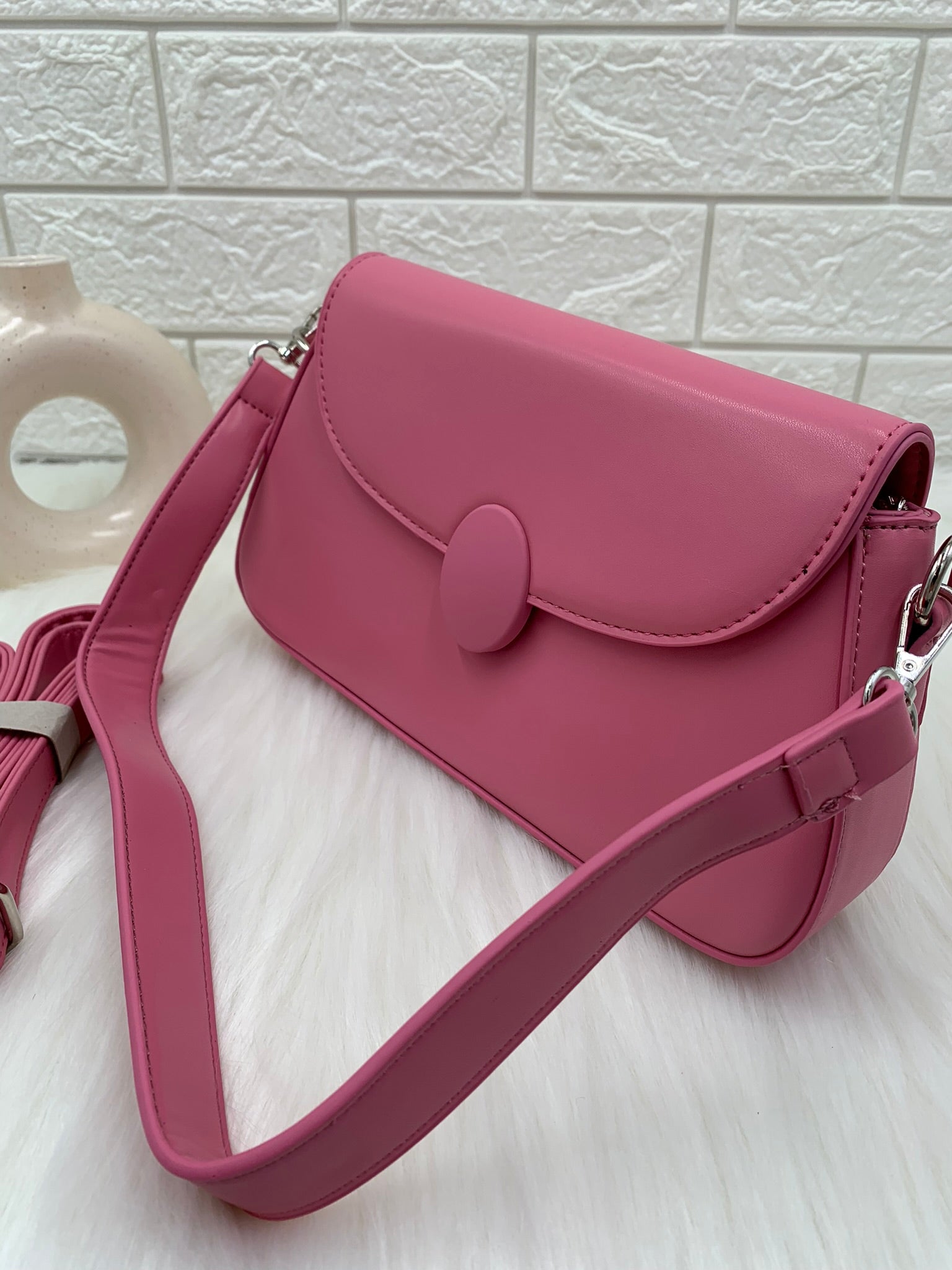This solid double detachable sling bag combines style and functionality with a sleek design, a secure inner pocket, and a convenient outer pocket for quick access, making it perfect for everyday use.