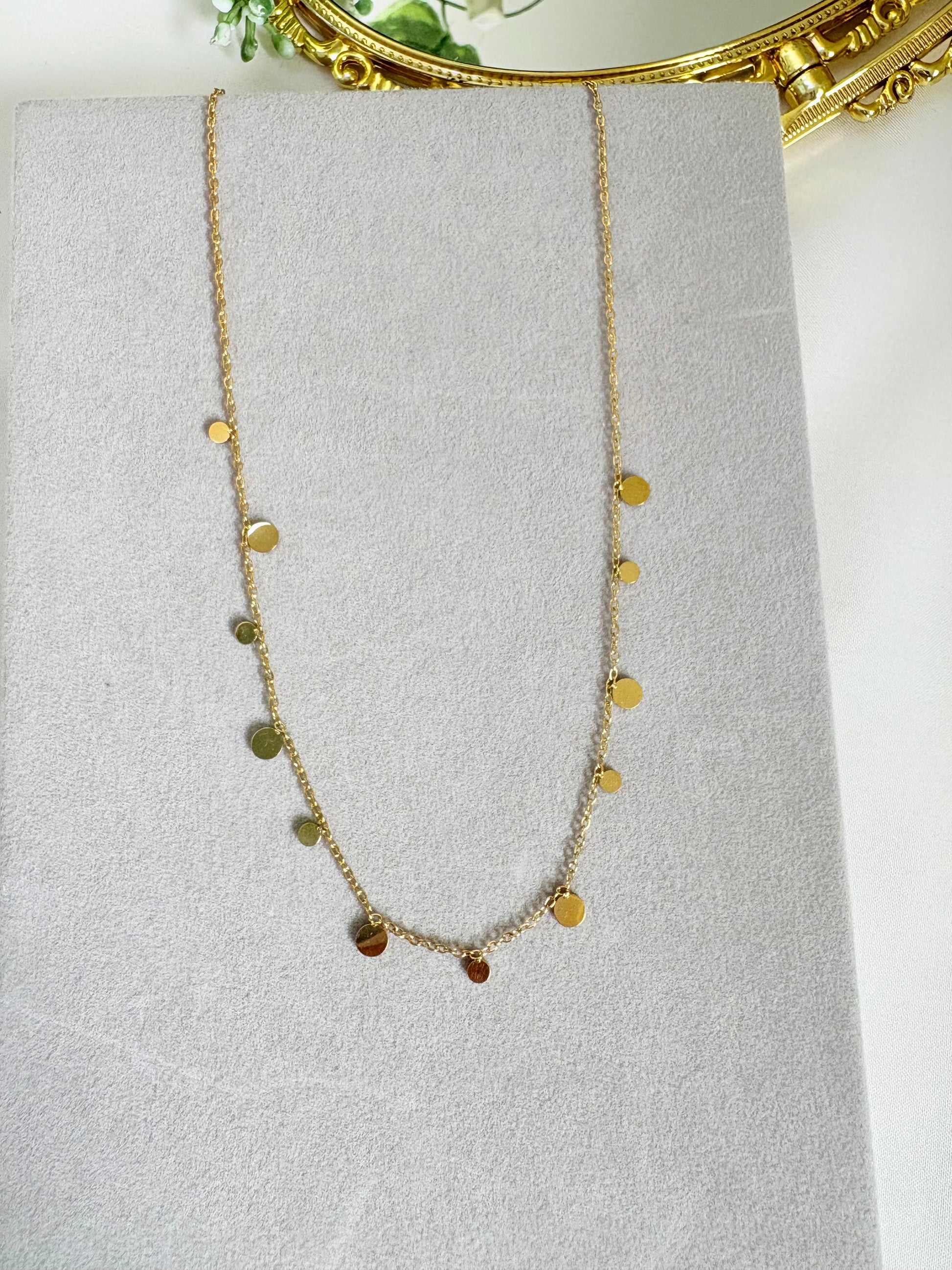 Introducing our new Stainless Steel Collection, designed for those who live life to the fullest. Our total waterproof jewelry allows you to shower, swim, and exercise without worrying about tarnishing your favorite pieces. The highlight of this collection is the perfect layering necklace, crafted with a thin chain adorned with cute oval discs.