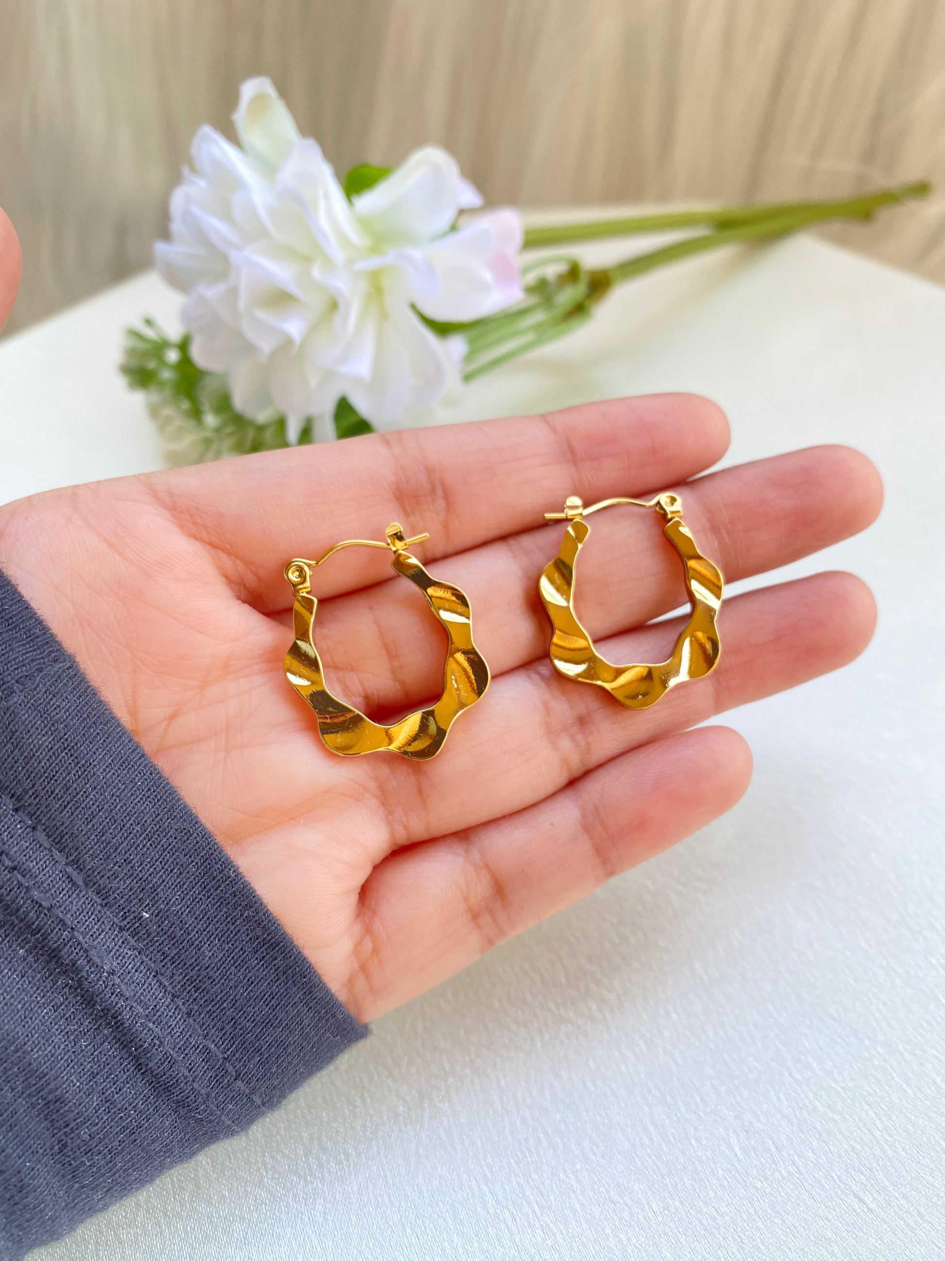 Trendy Gold Hoop Earrings: These stylish hoops come in various designs like chunky gold hoops, teardrops, and more. They add a fashionable touch to any outfit and can be worn alone or stacked together. Perfect for all occasions!