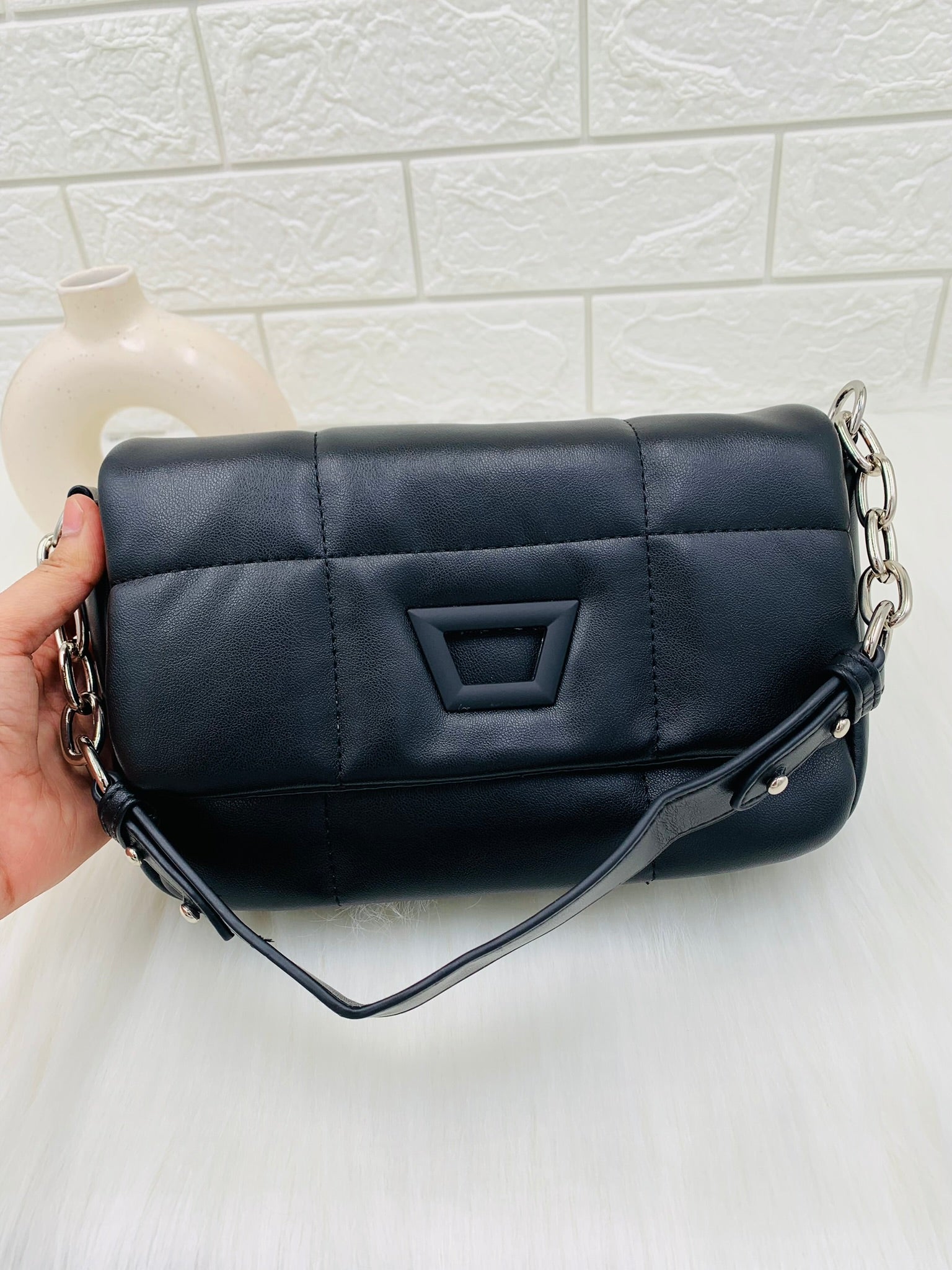 Upgrade your accessory collection with this elegant satchel bag, featuring a quilted texture for a sophisticated touch. Designed for both casual and formal looks, it offers ample space and versatile carrying options.