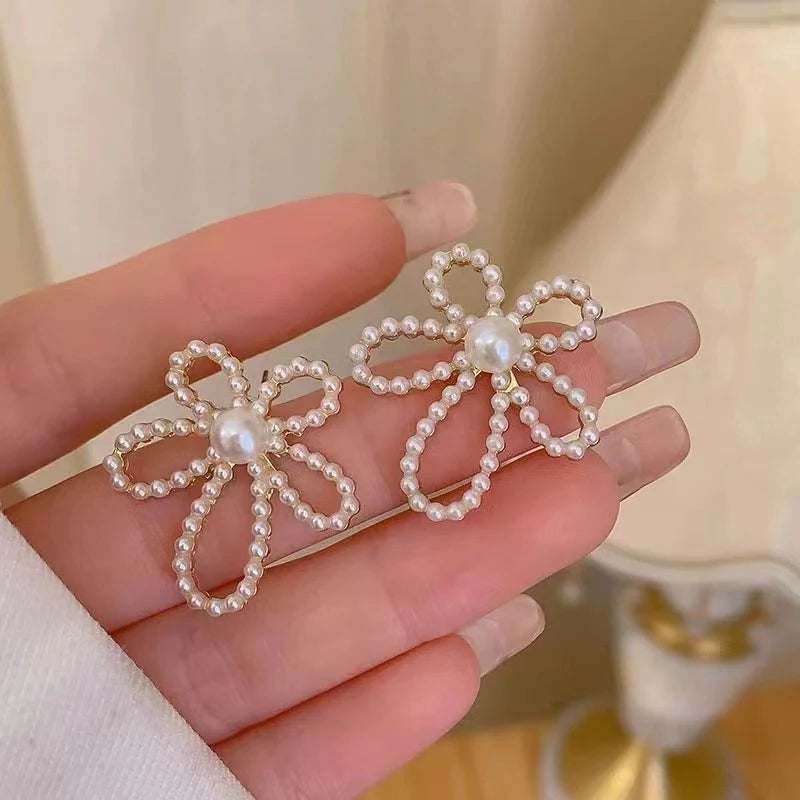 Bring timeless elegance to your style with our Korean Pearl Flower White Stud Earrings. These delicate earrings feature a stunning floral design accented with lustrous pearls, embodying the charm of minimalistic Korean fashion.
