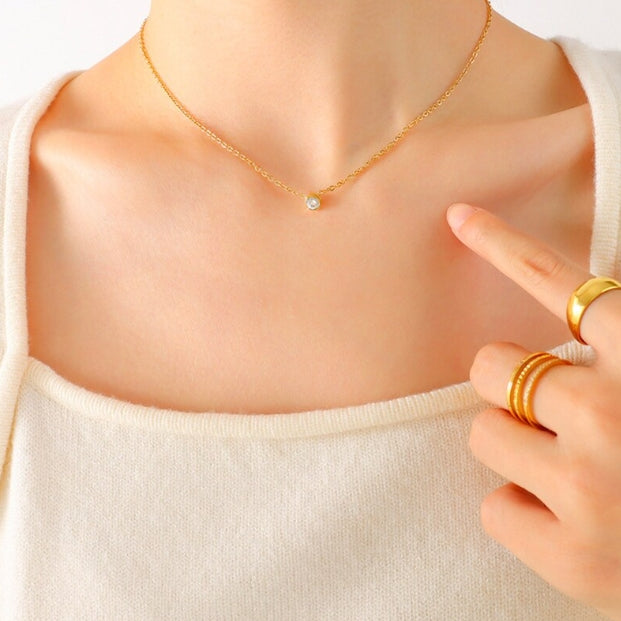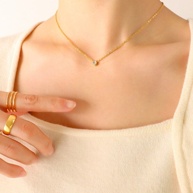 Add a touch of elegance to your jewelry collection with this Dainty Gold-Plated Diamond Necklace. Perfectly designed for minimalists, this necklace is a timeless accessory that complements any style.